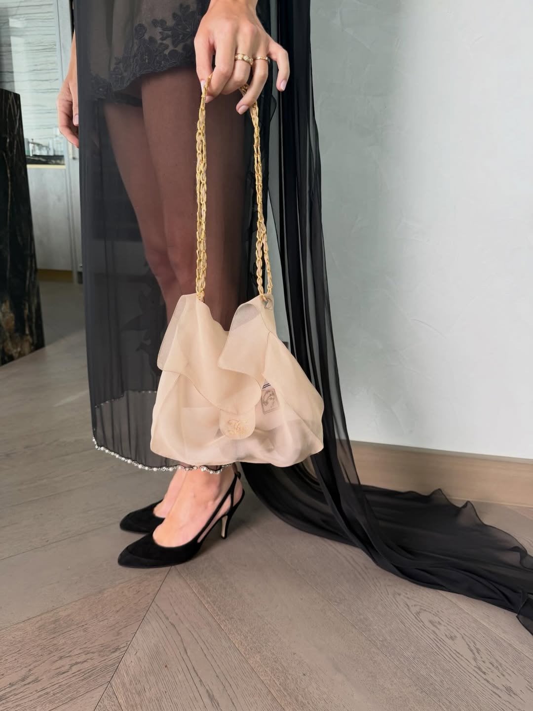 Ця сумка виконана із тонкого напівпрозорого шифону і є переосмисленням найкультовішої сумки Chanel — Timeless.