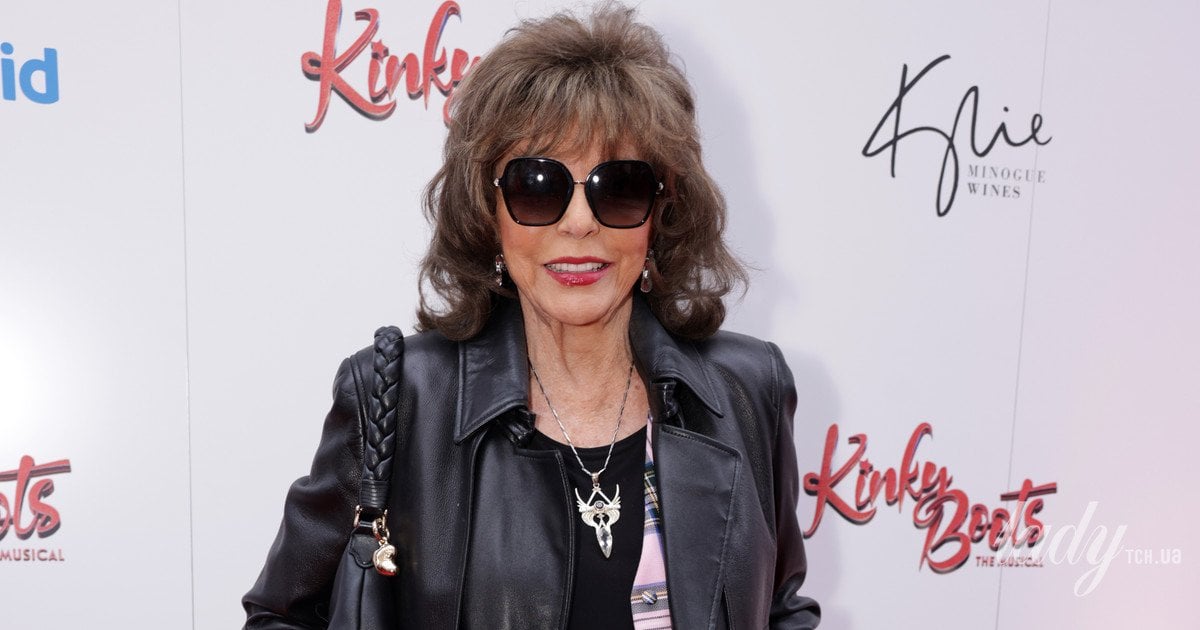 Має вигляд просто вау: 92-річна Джоан Коллінз сяяла на доріжці в шкіряному пальті і на підборах