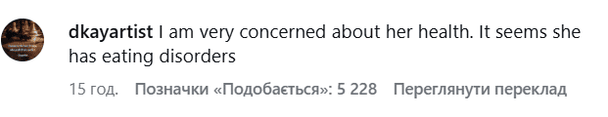 «Я дуже стурбований її здоров’ям. Схоже, у неї розлад харчової поведінки».