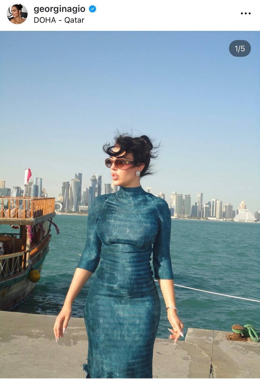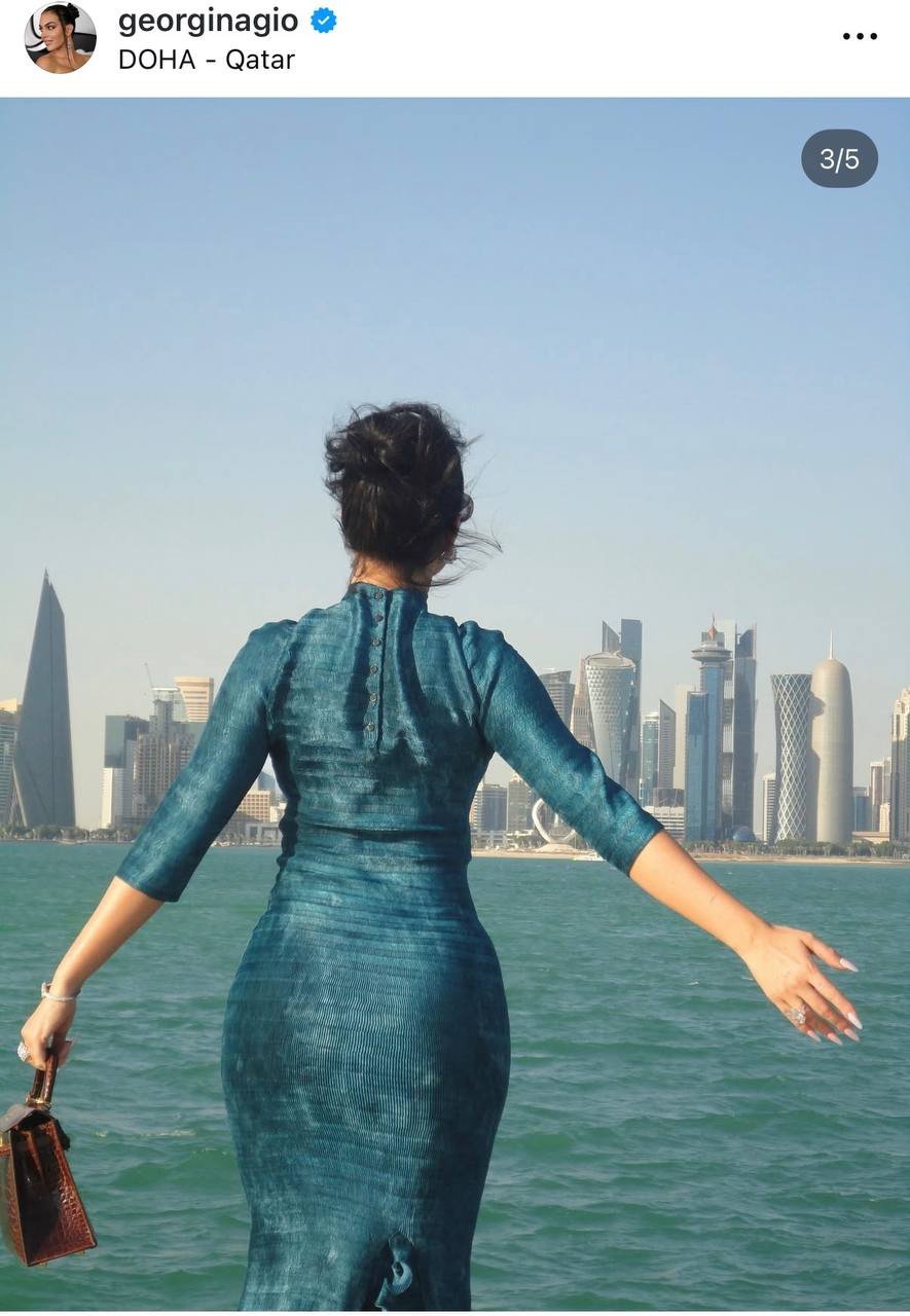 31-річна модель, інфлуенсерка та наречена футболіста Кріштіану Роналду — Джорджина Родрігес — поділилася у своєму Instagram серією фото з набережної в Досі, столиці Катару, куди вона прилетіла кілька днів тому.