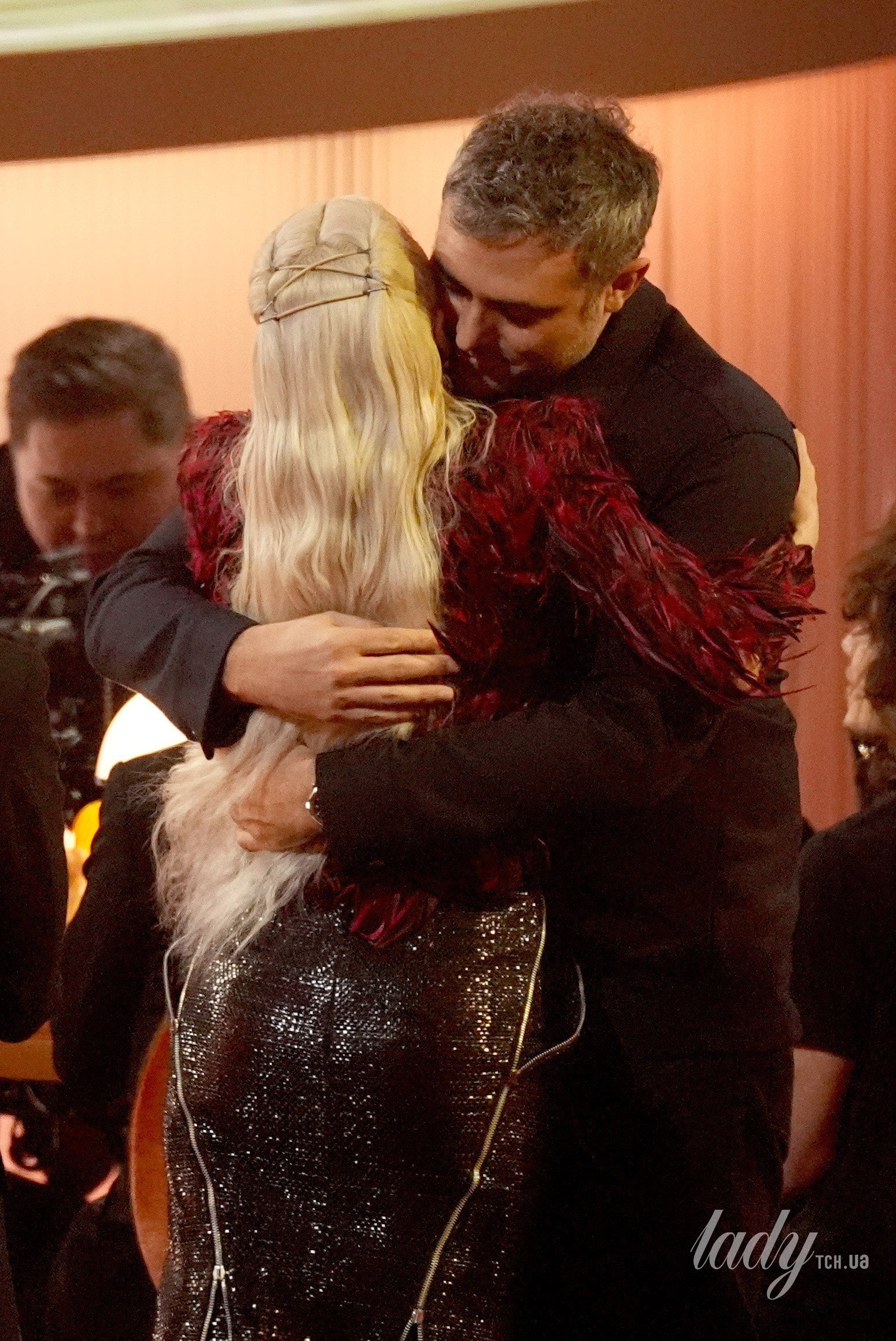 Саме в цьому образі Гага отримала нагороду, і до кадру потрапив момент, як вона обіймає в залі свого нареченого, який прийшов її підтримати.
