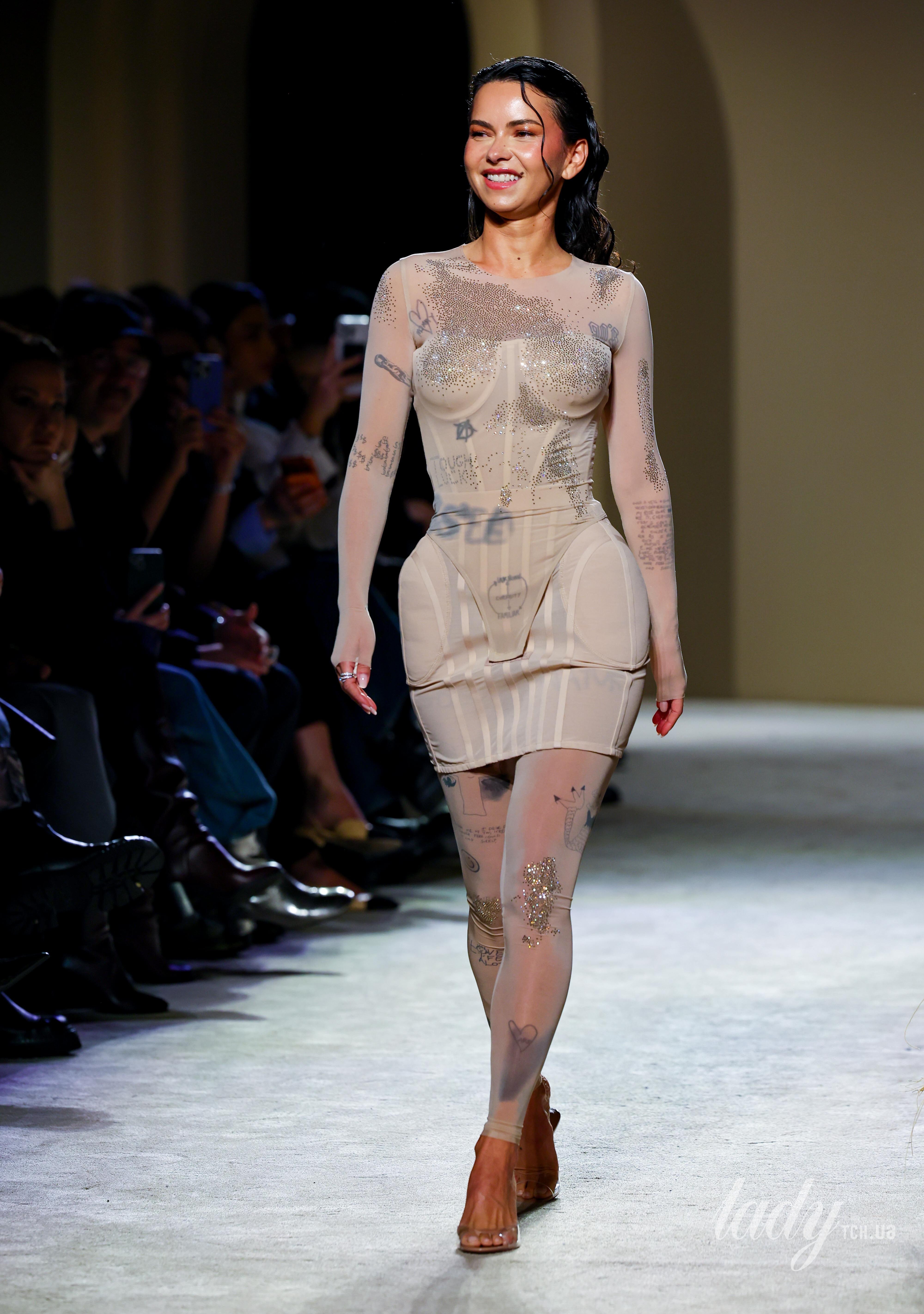 «3…2…1…почали! Підбори на місці, підборіддя вгору. Ці вогні яскравіші за стадіон! Я маю ефектний вигляд? Я почуваюся ефектною. Працюй на повороті… розворот! Зробила це ідеально. Це було просто неймовірнооооо!!», — написала співачка та опублікувала фрагмент свого дефіле.