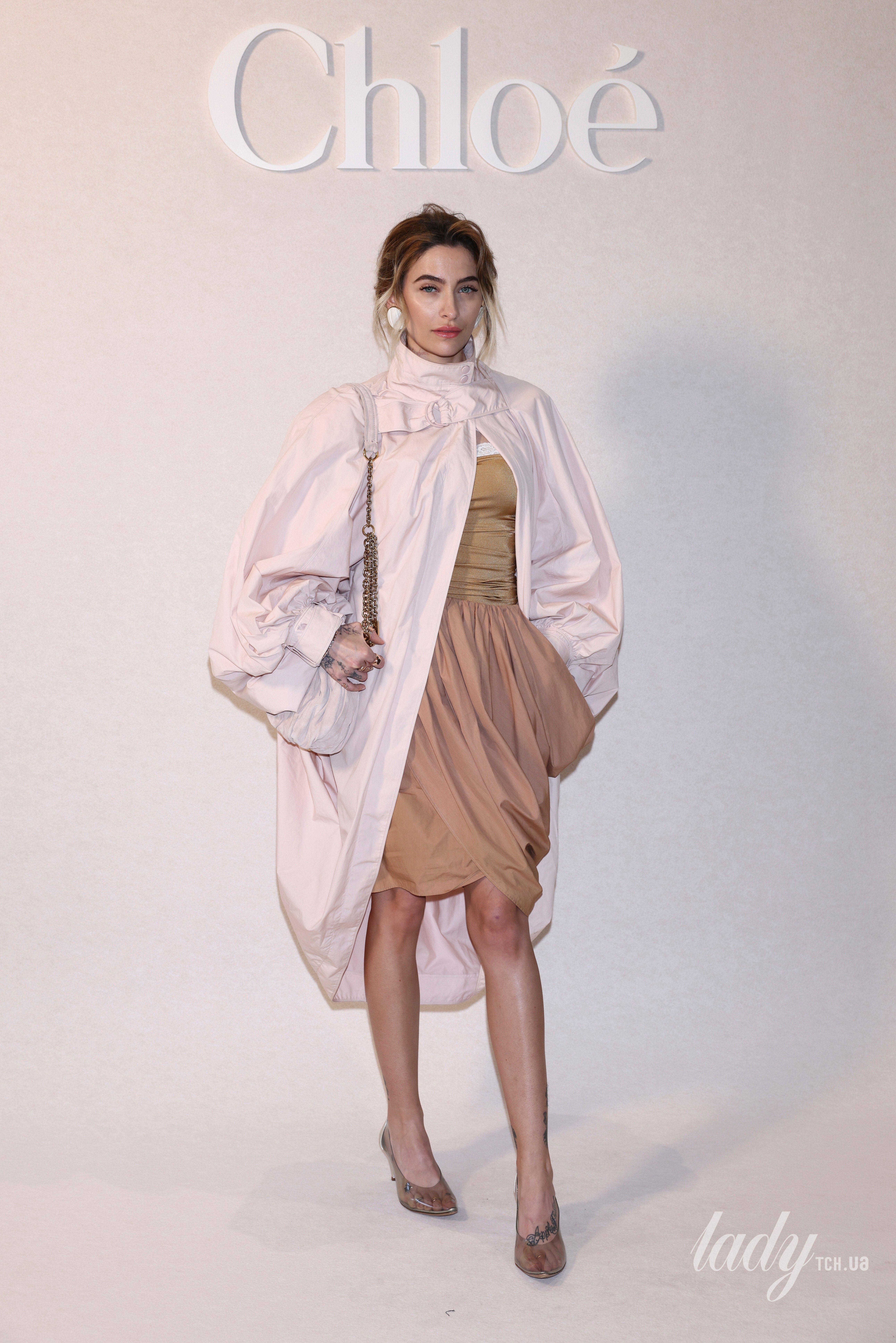 Не така, як завжди: донька Майкла Джексона у пудровому тренчі і золотистому топі з’явилася на показі Chloе