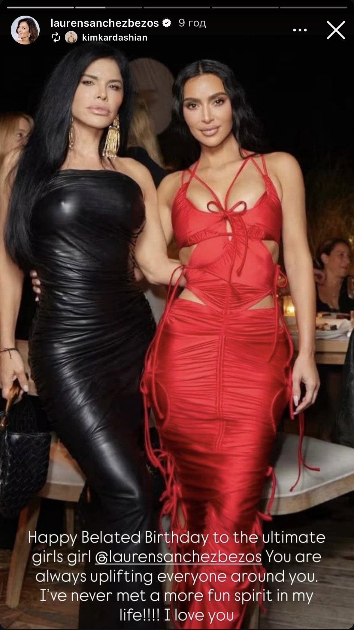 Кім Кардашян опублікувала в Instagram Stories спільне фото зі свожю подругою, дружиною Джеффа Безоса — Лорен Санчес, яка відсвяткувала своє 56-річчя.