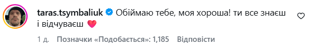 «Обіймаю тебе, моя хороша! Ти все знаєш і відчуваєш», — написав Цимбалюк, додавши сердечко.