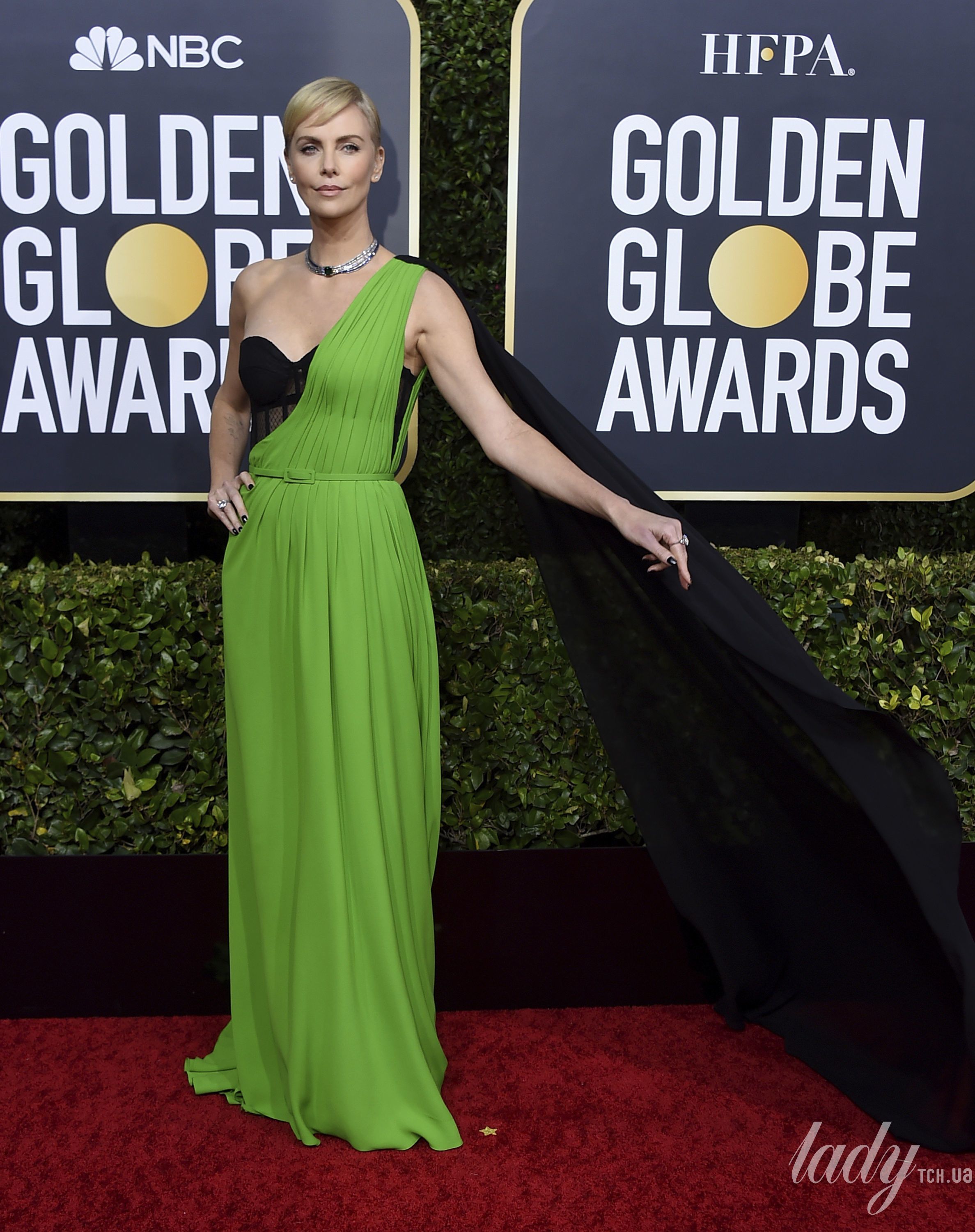 А на "Золотому глобусі" з'явилася у вбранні, що складалося з чорного ліфа з прозорими вставками, зеленого подолу і мало довгий чорний шлейф. На "Оскарі-2020" Шарліз напевно з'явиться в сукні, але в якій? Можливо, знову від Будинку Dior, як гадаєте?