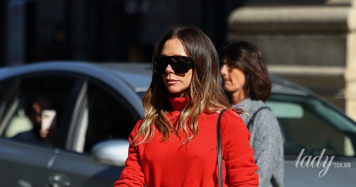 Вікторію Бекхем помітили за чотири дні до показу колекції осінь-зима 2026, а була вона в одній зі своїх улюблених комбінацій одягу. Зверху Вікторія одягла червоний теплий светр-водолазку, який заправила у штани бежевого кольору з надвисоким посадженням.