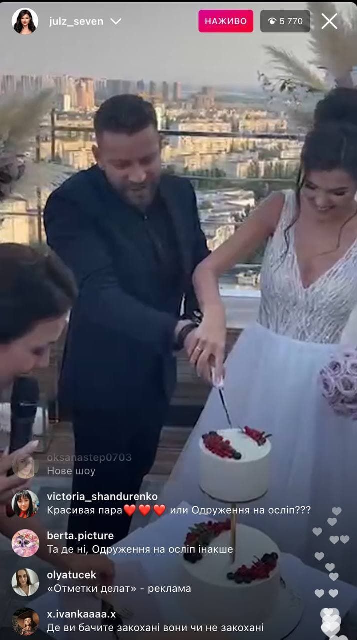 А ще вчора зі сторінки Бельченко в Instagram провели прямий ефір і показали, як Юля з Богданом розрізали торт та цілувалися під вигуки "гірко". Але більшість фоловерів відзначили, що пара цілувалася нещиро, вони не мали закоханий вигляд і все було награно.