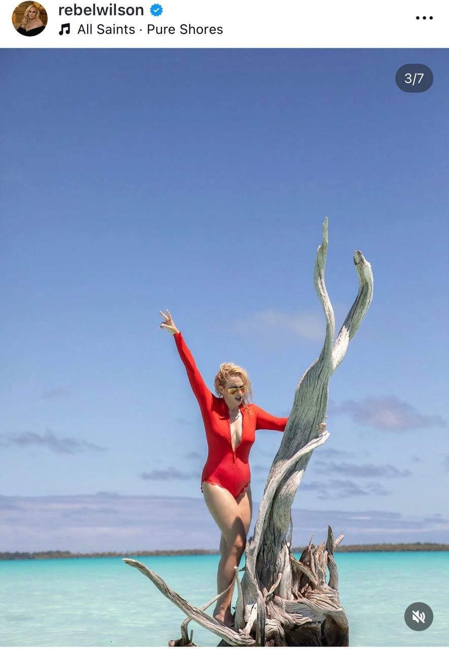 Акторка і продюсерка Ребел Вілсон поділилася у своєму Instagram серією знімків, присвячених її 46-річчю, яке вона святкує 2 березня. На фото вона позувала біля сухого дерева в морській воді в червоному суцільному купальнику з довгими рукавами, у якому мала вигляд як один із рятувальників Малібу.