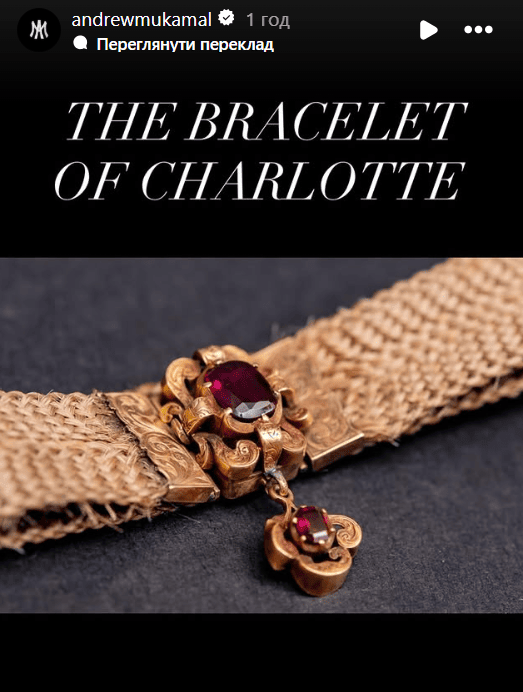 Це була жалобна пам’ятна прикраса, яка була популярною і дуже характерною для моди 19 століття. Подібні браслети виготовляли спеціальні майстри.