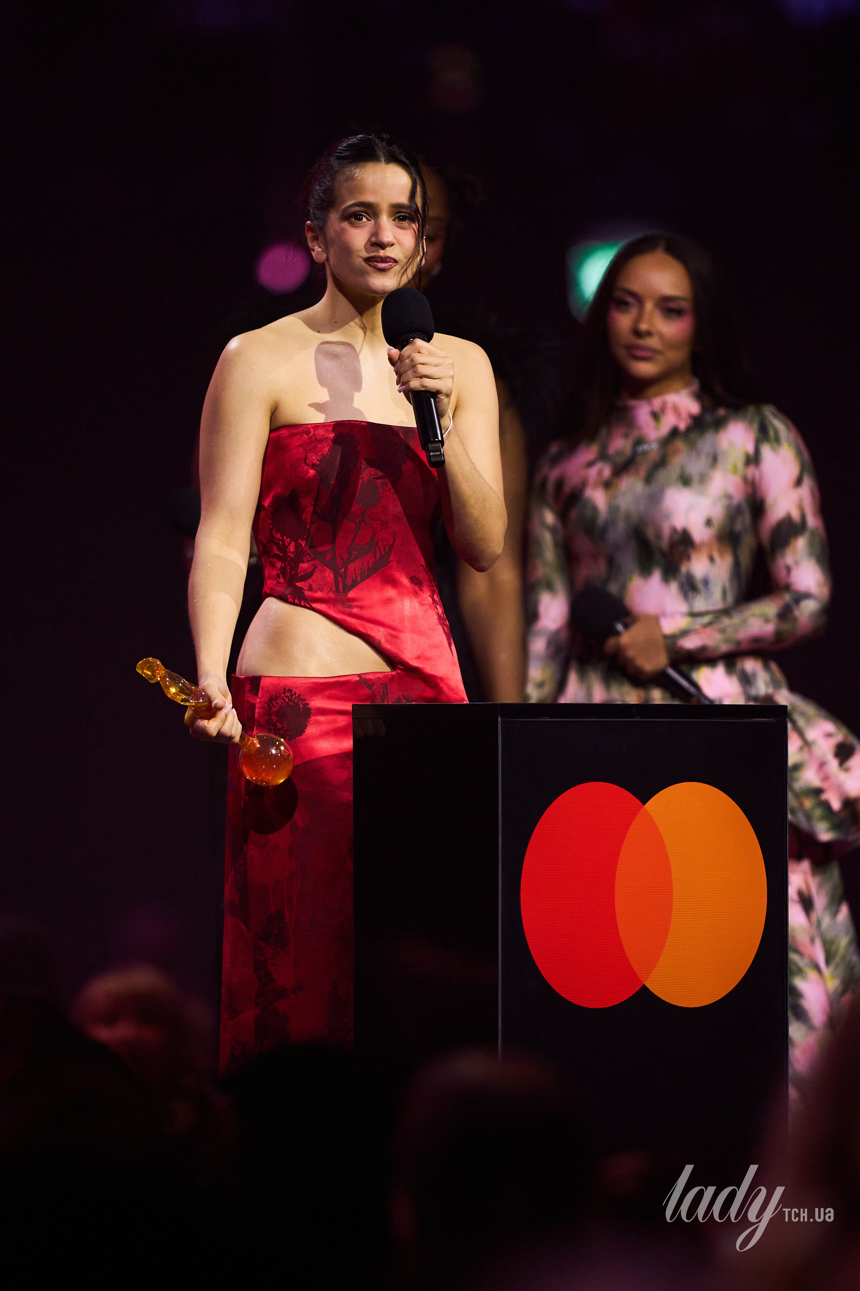 Коли Розалія вийшла на сцену за нагородою, то теж змогла привернути увагу. Артистка переодяглася у червону сукню від Alexander McQueen з колекції весна-літо 2026.