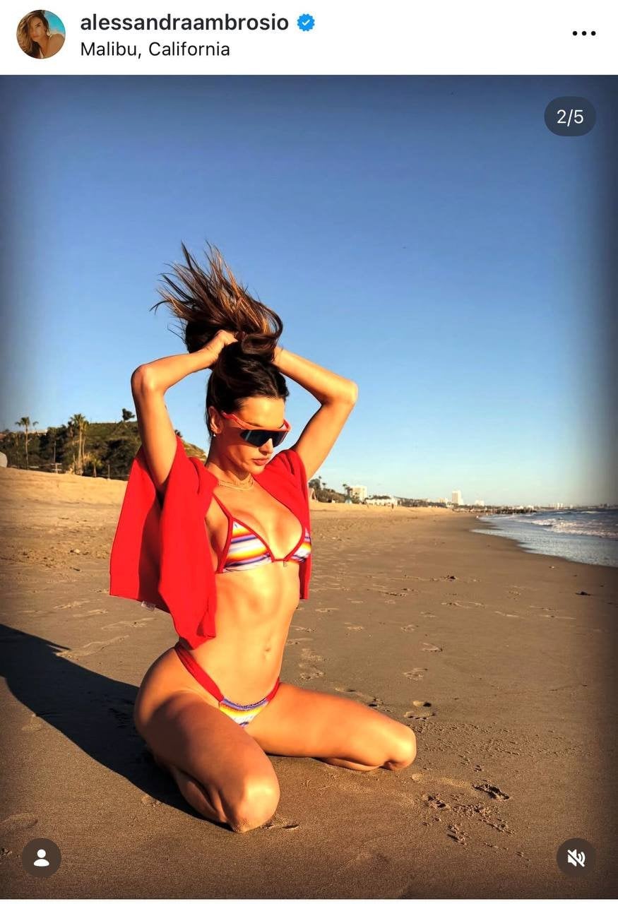 44-річна бразильська топмодель і «ангел» Victoria’s Secret - Алессандра Амбросіо - поділилася в Instagram серією пляжних фото. Вона позувала на піщаному березі.
