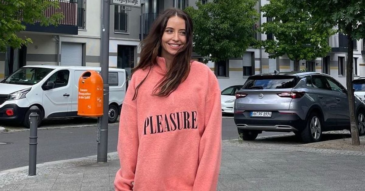 Надя одягнена у коротку білу сукню, зверху якої одягла на одному знімку персикове худі. Лук вона доповнила чорно-білими кедами.
