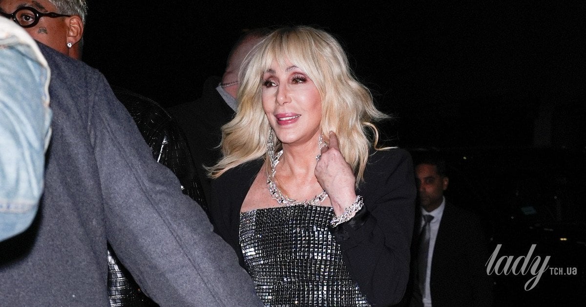 Співачка Шер потрапила під приціл папараці у Нью-Йорку, коли йшла на знімання у популярному американському шоу Saturday Night Live. Одяглася зірка дуже гламурно, адже поєднала блискучий сріблястий топ з камінням, який носила у поєднанні з чорними штанами прикрашеними стразами та вкороченому жакеті.
