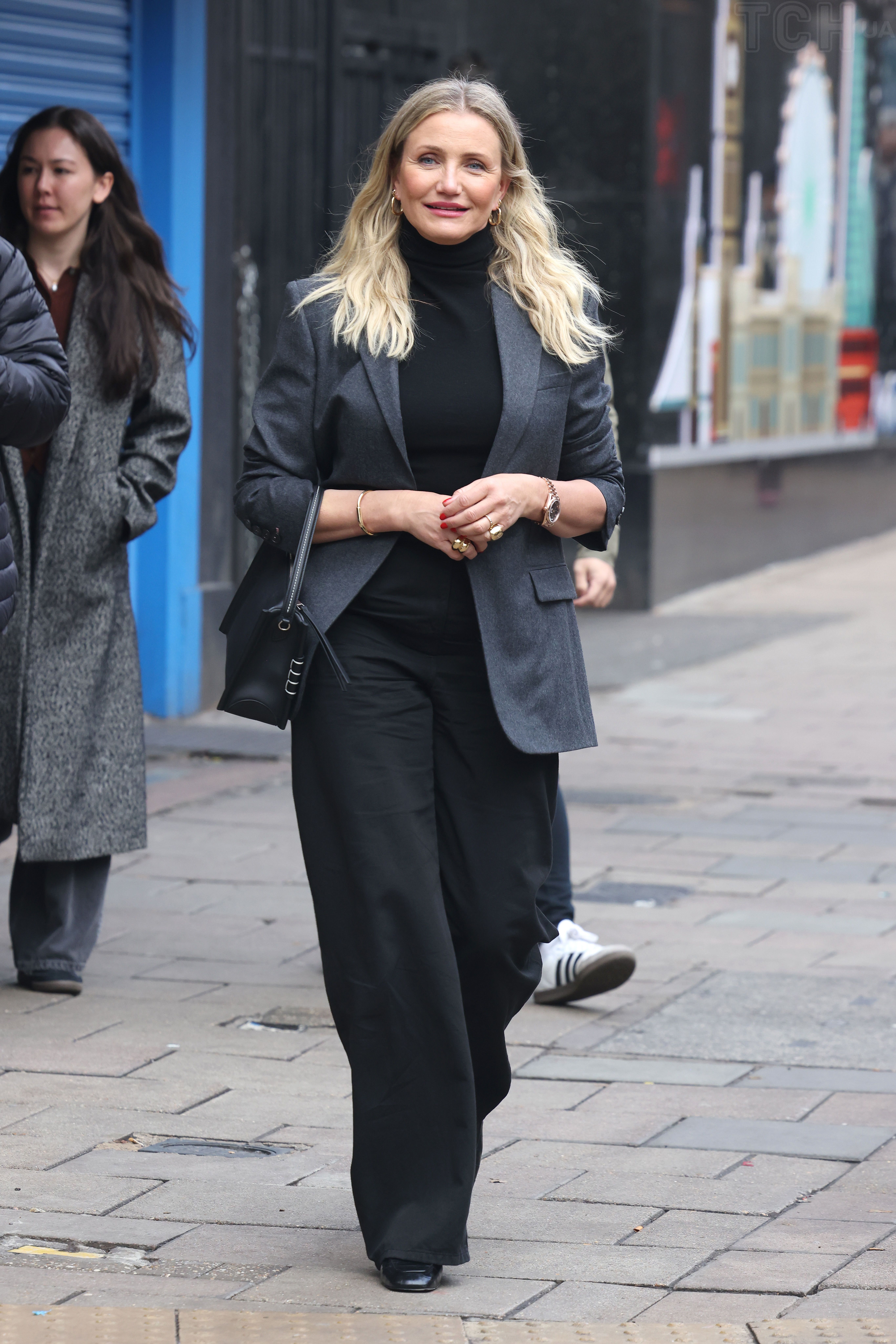 У сірому жакеті та чорних штанах: папараці зазнімкували Камерон Діас на вулицях Лондона