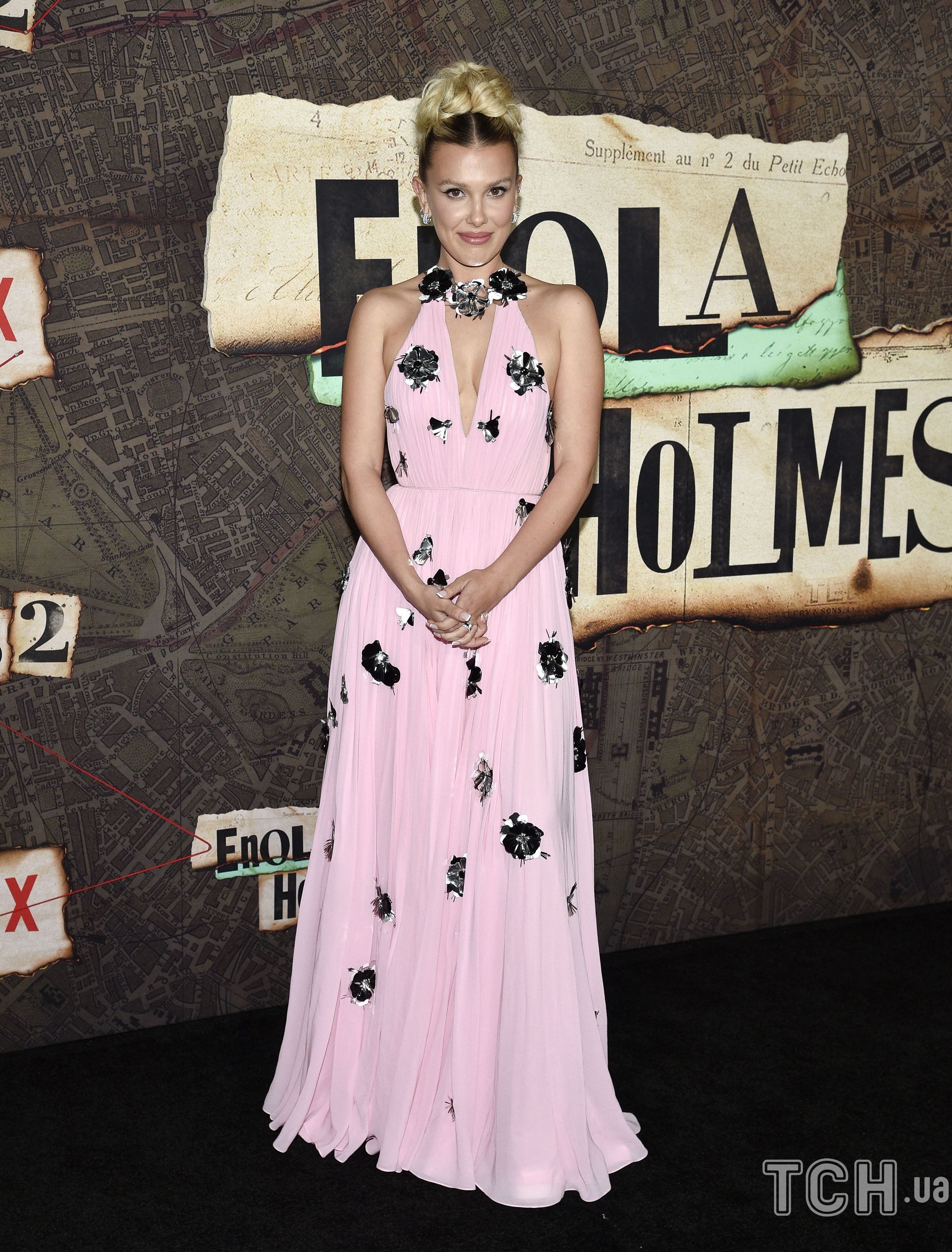 З вишивкою, бісером та драпуваннями: 21-річна Міллі Боббі Браун позувала на прем'єрі фільму