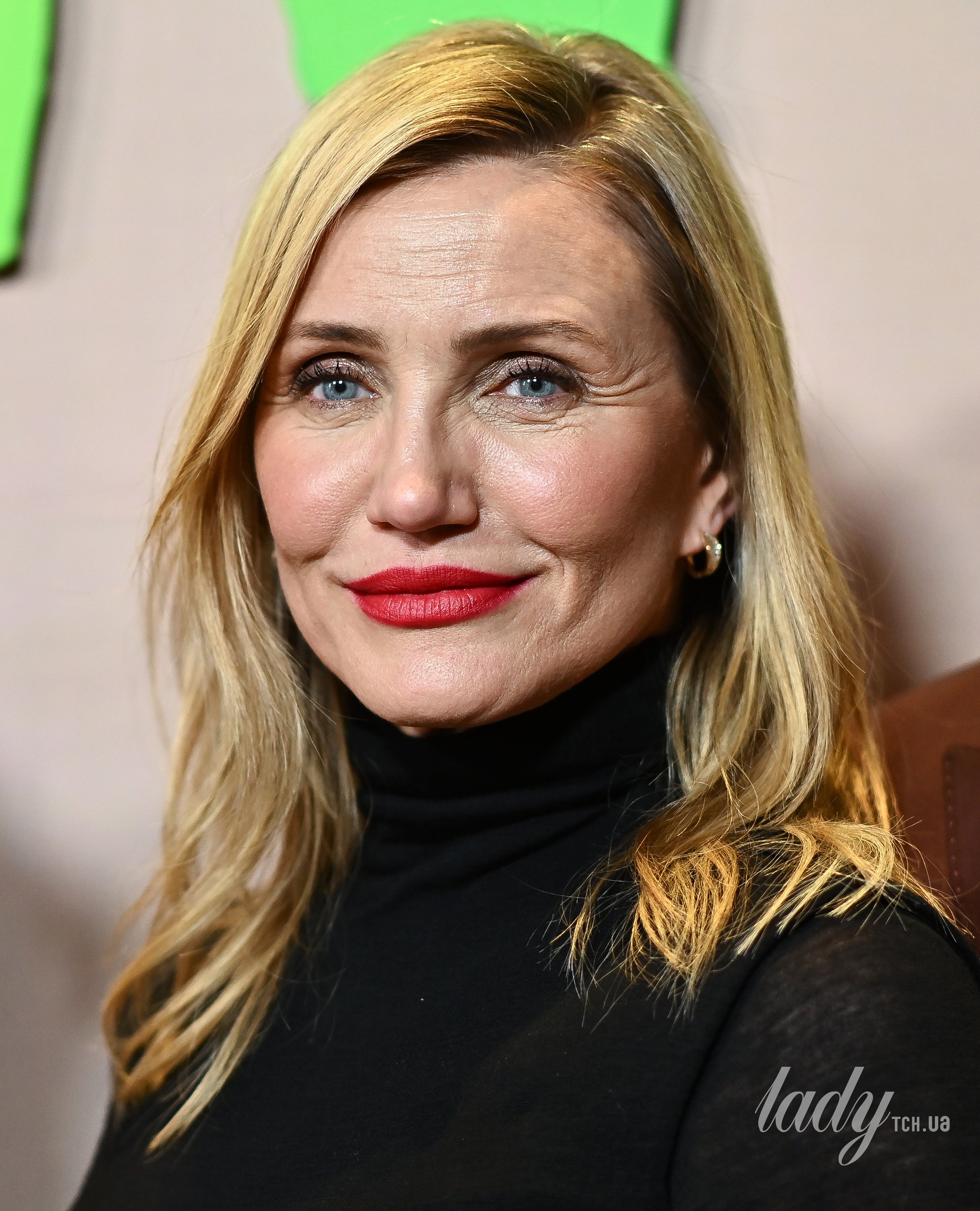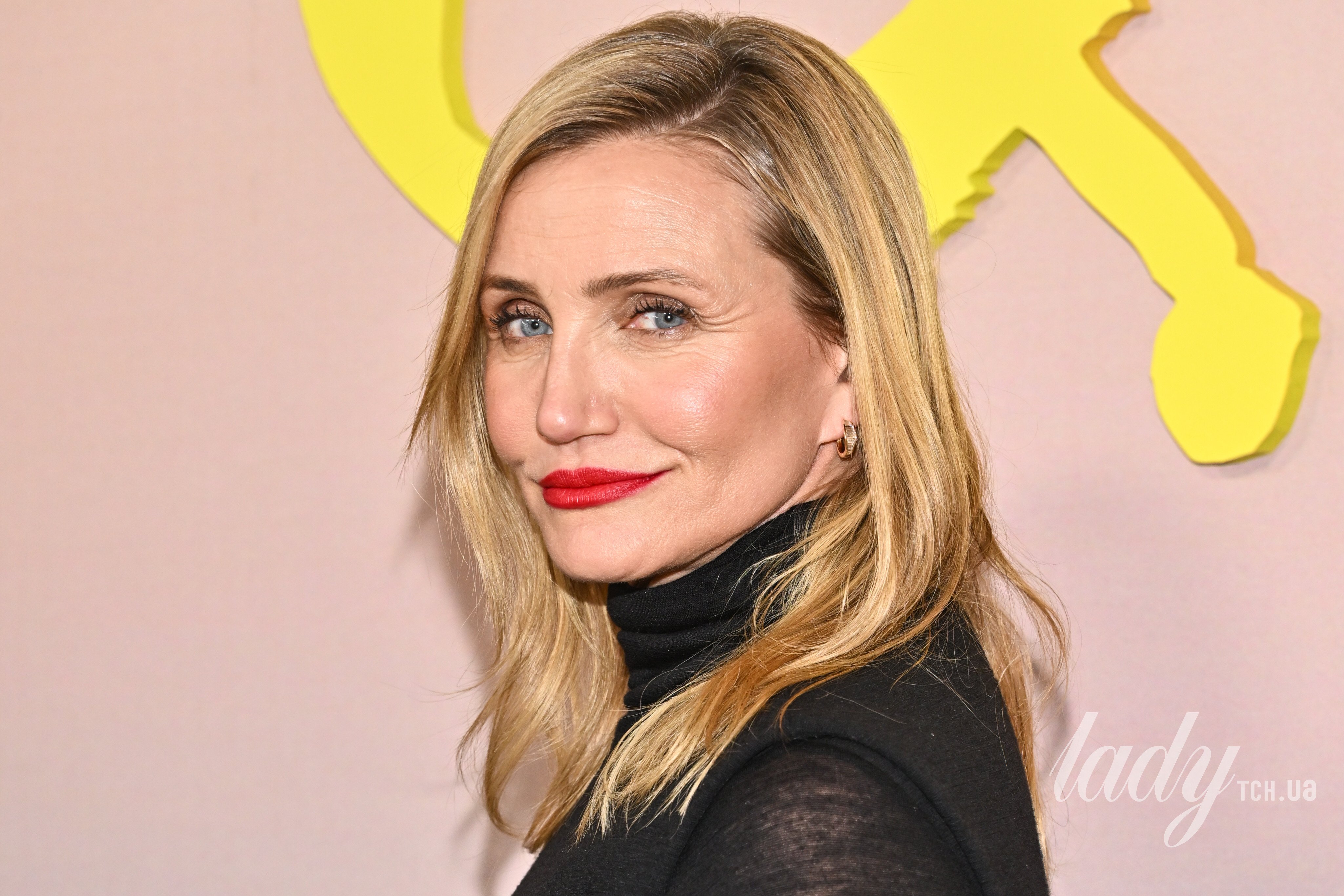 53-річна Діас з’явилася на заході у довгій сукні з високим коміром та драпуванням на спідниці. Зірка доповнила сукню яскравим акцентом — червоними шкіряними туфлями і такою самою матовою помадою на губах. А біляве волосся розпустила і зробила легкий макіяж очей, а також одягла золоті сережки у вуха.