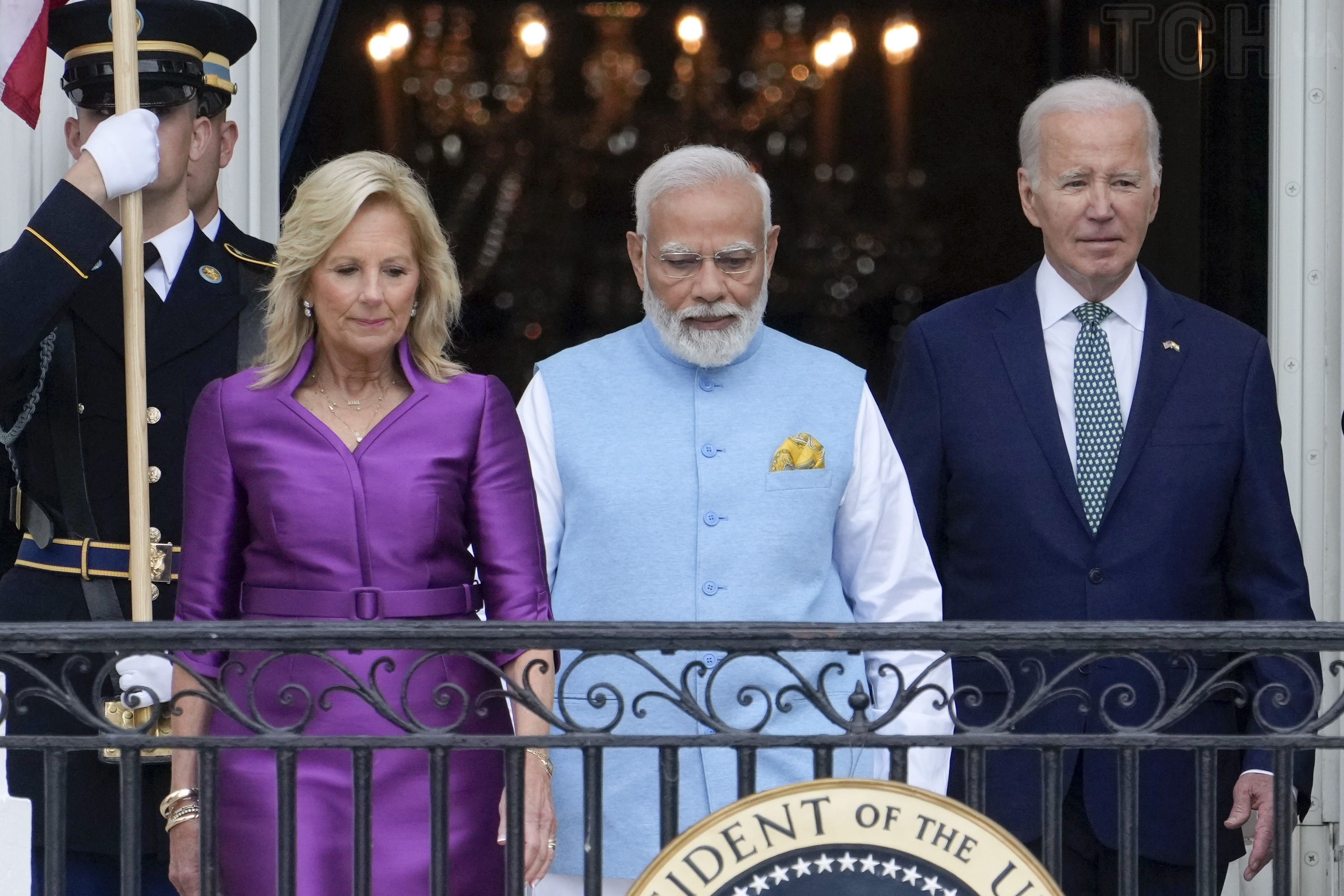Президент США Джо Байден і його дружина Джилл Байден приймали у себе в гостях у Білому домі прем’єр-міністра Індії Нарендру Моді. Президентське подружжя спочатку вітало гостя на Південній галявині, а потім вони вийшли на балкон, щоб разом привітати публіку.