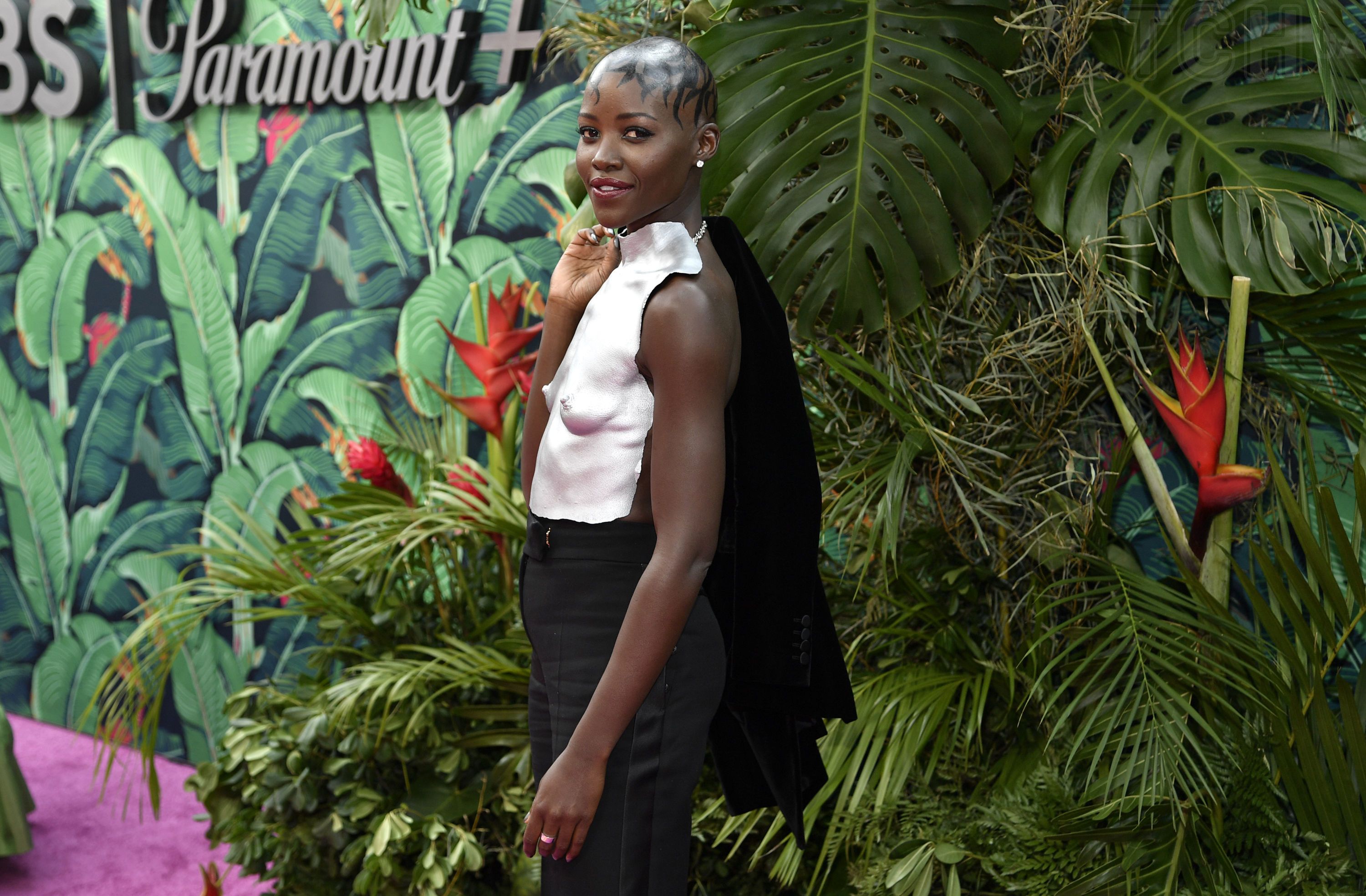А ще Люпіта продемонструвала татуювання із хни на голомозій голові. Вона зробила насичений макіяж смокі-айс, нафарбувала губи малиновою помадою, прикрасила вуха масивними діамантовими сережками-цвяшками від бренду De Beers і завершила лук сріблястим манікюром.