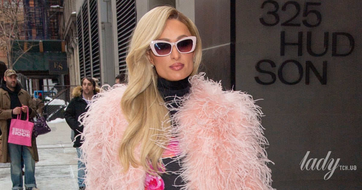 Гілтон зробила зачіску з локонами на один бік, макіяж із рожевим блиском на губах і французький манікюр. Свій лук вона завершила сонцезахисними окулярами у світло-рожевій оправі та діамантовими сережками-цвяшками.