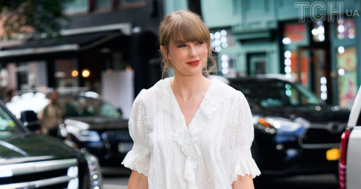 33-річна Тейлор Свіфт продемонструвала невимушений літній образ, який одягла, щоб відвідати студію Electric Lady Studios у Нью-Йорку. На зірці була біла блуза з V-подібним декольте, рюшами та перфорацією, яку вона поєднала з джинсовими мінішортами із запахом. Вбрання акцентувало увагу на довгих і струнких ногах дівчини.