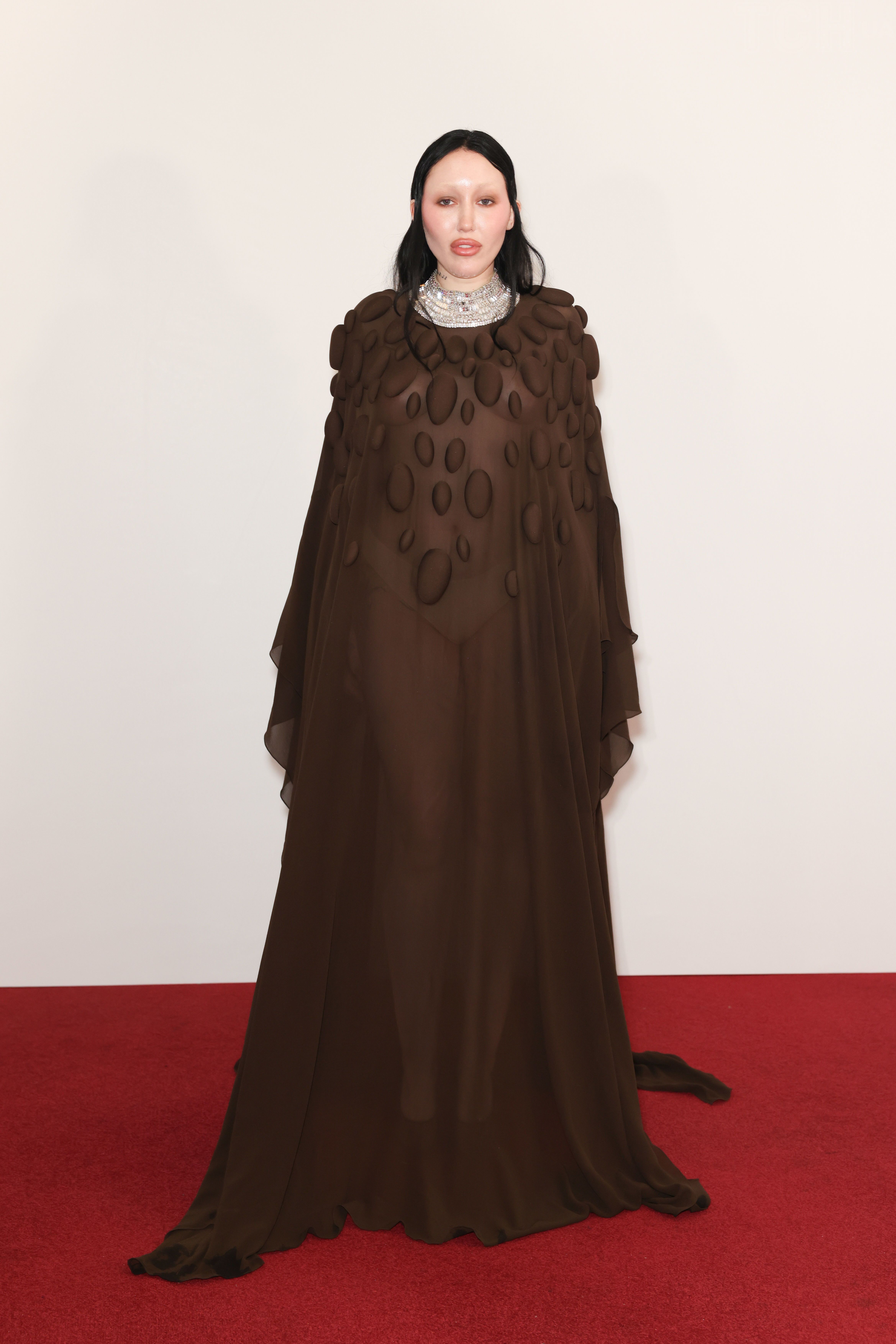Для своєї появи дівчина обрала провокаційний аутфіт від Stéphane Rolland. Вона одягла прозору коричневу сукню-балахон довжини максі, прикрашену у верхній частині яйцеподібним декором. Комір був розшитий дорогоцінним камінням.