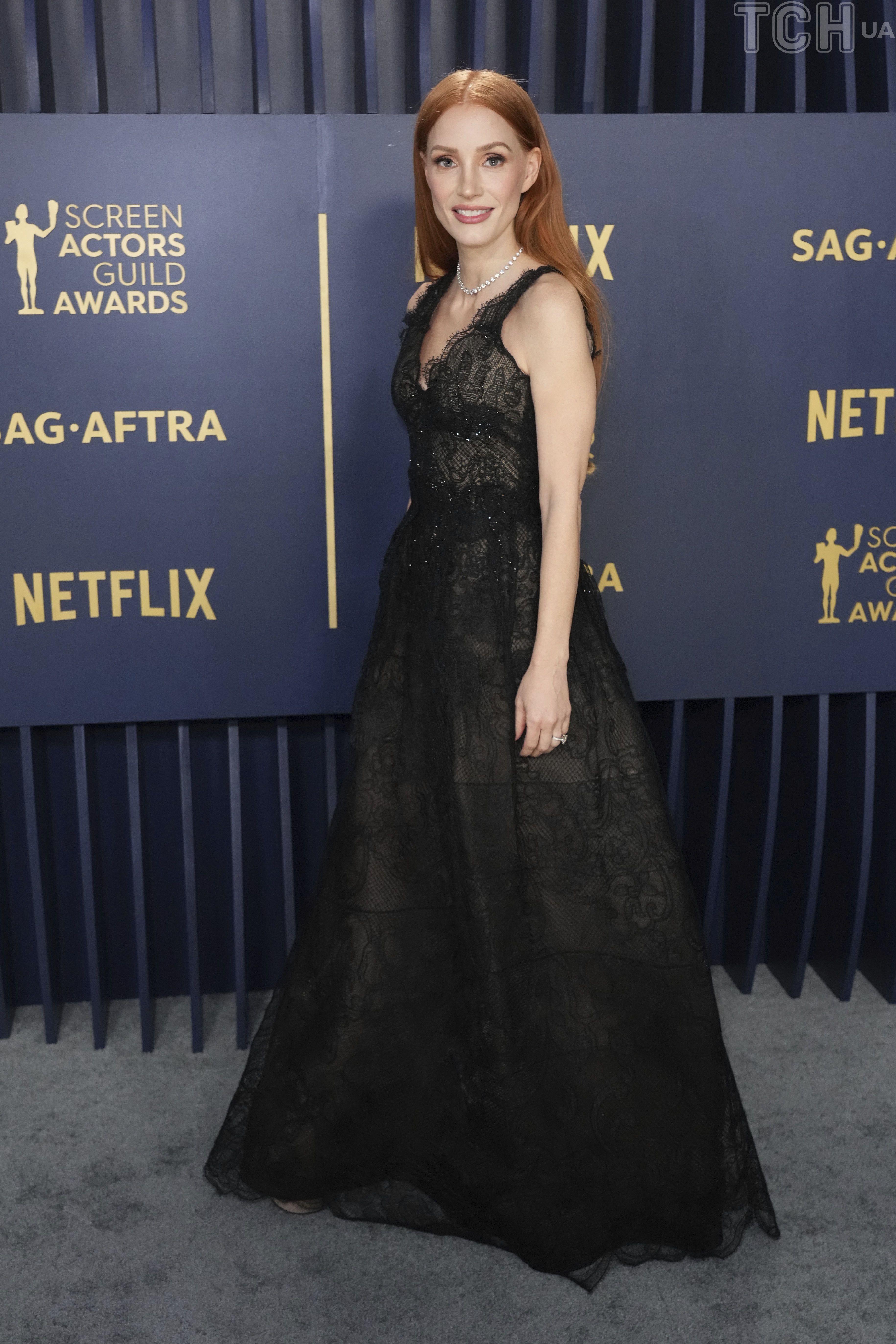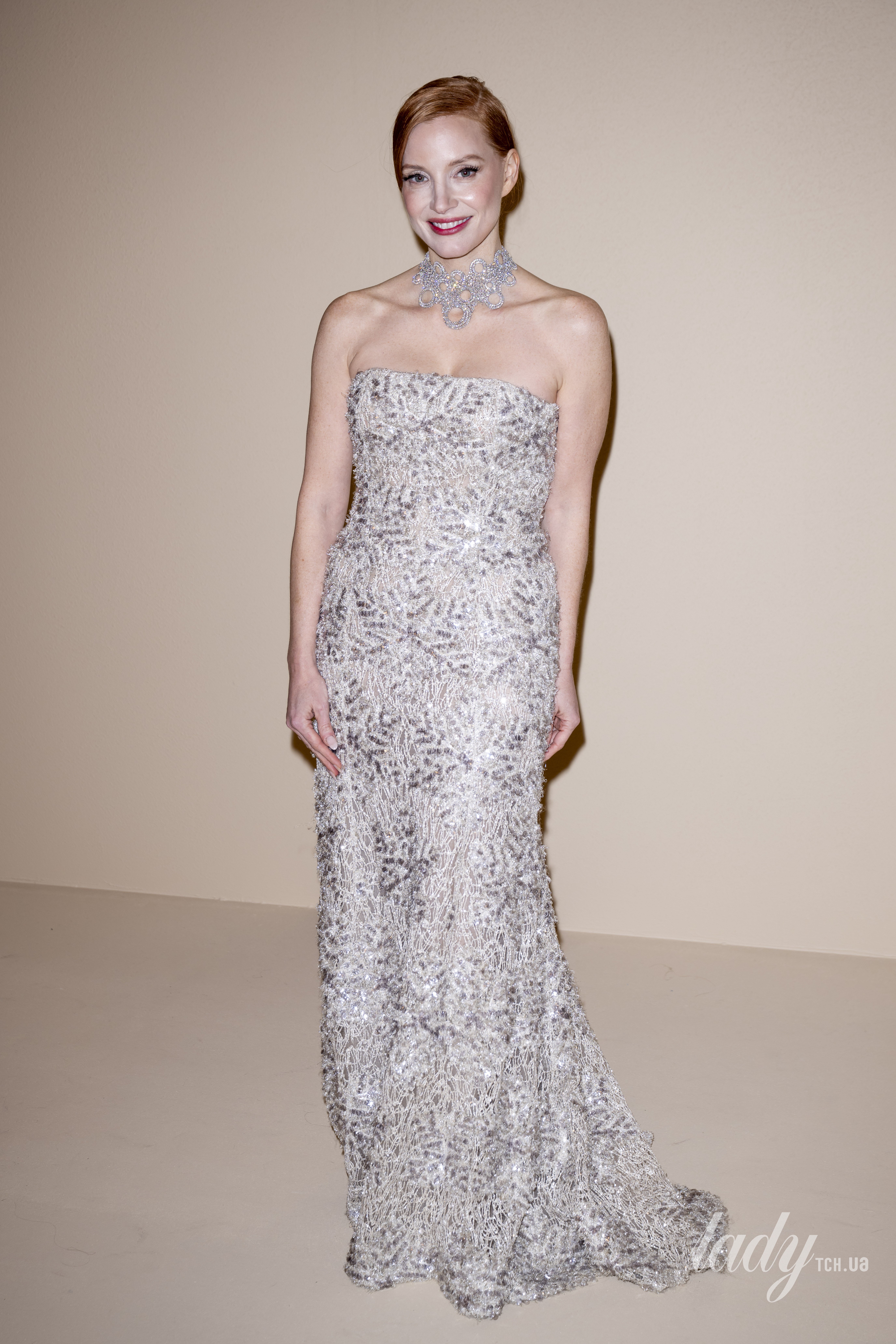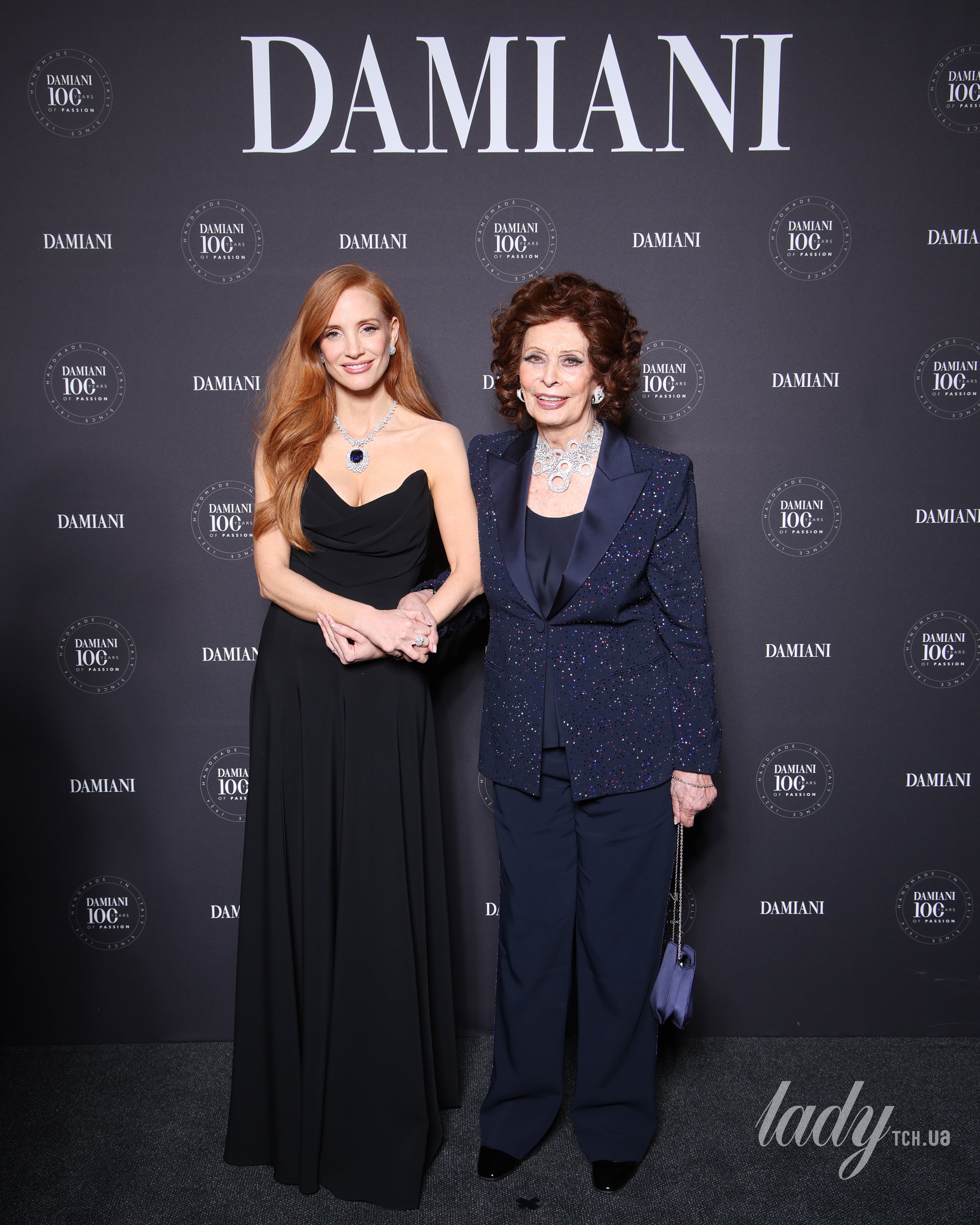 Однак родзинкою образу була не сукня, а прикраса на шиї акторки. Річ у тім, що Честейн доповнила свій гламурний образ діамантовим кольє від бренду Damiani із 18-каратного білого золота. Цікаво, що таке саме кольє носила легендарна Софія Лорен 2024 року.