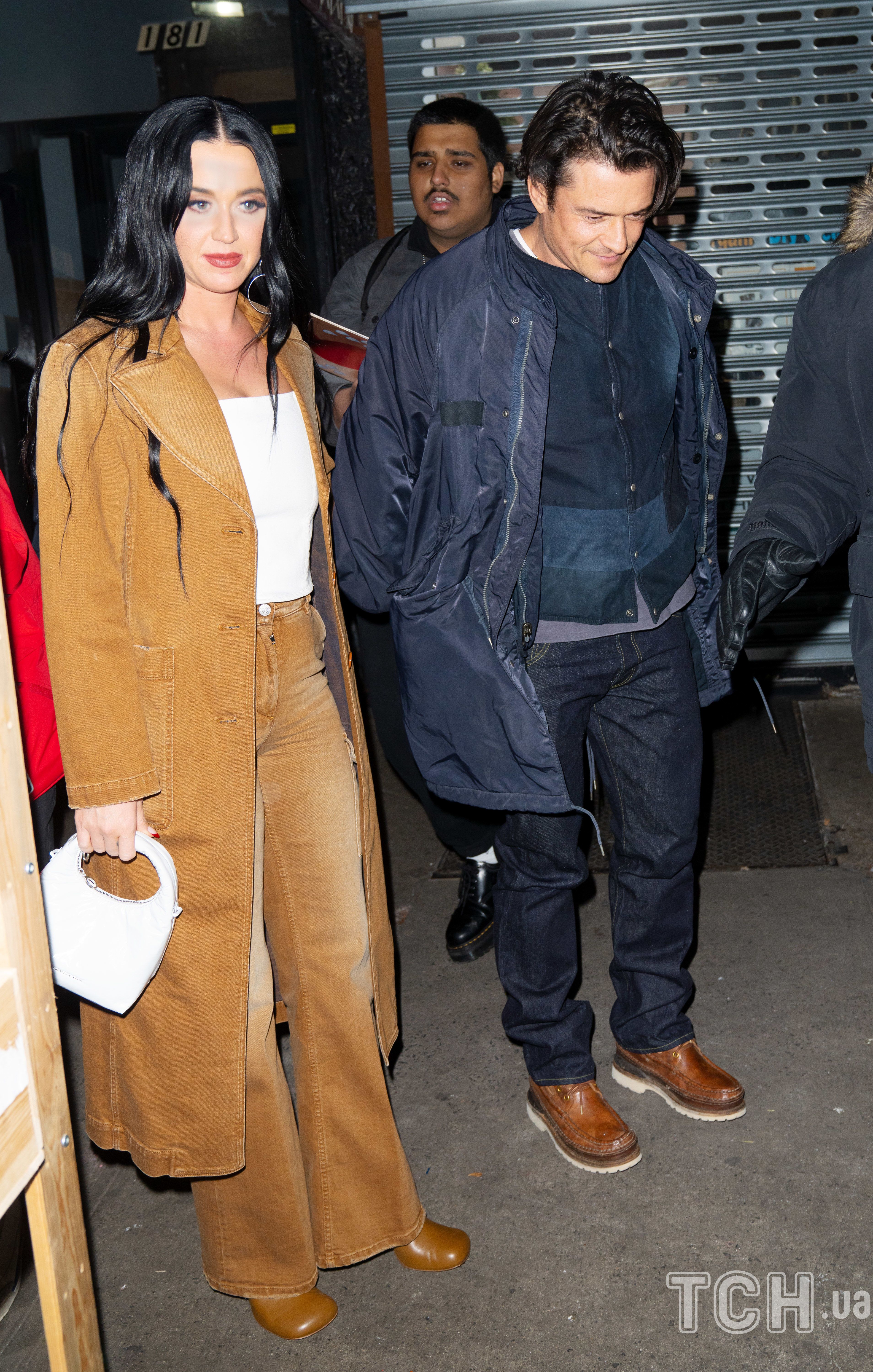 У подібних луках Кетті з'являлася на публіці вже неодноразово. Кілька разів її бачили на побаченнях з Орландо Блумом у плащі та штанях такого ж фасону.