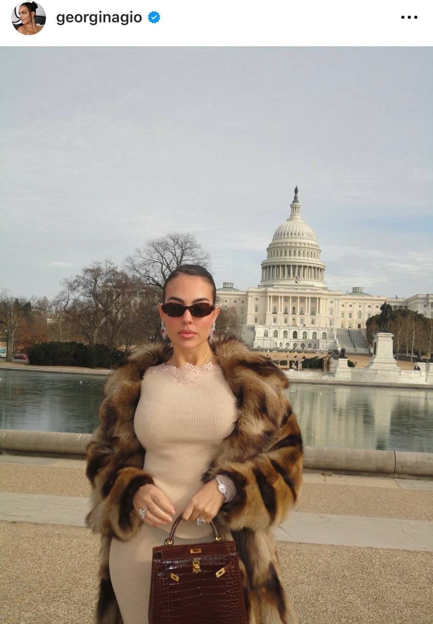 У шубі, діамантах і з розкішною сумкою: Джорджина Родрігес прогулялася Вашингтоном