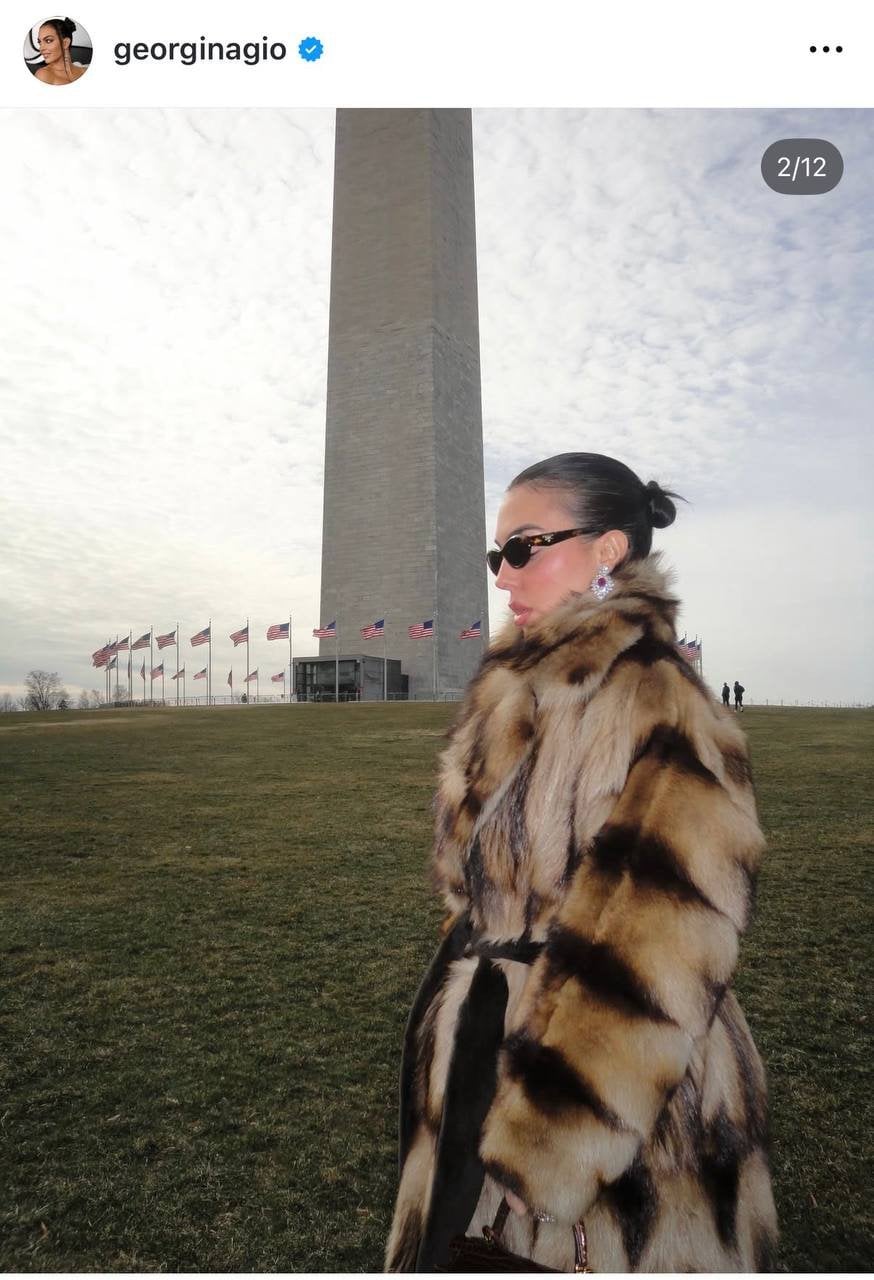 Вона позувала навпроти Капітолію і біля 169-метрового Монумента Вашингтона. Джорджина була одягнена в трикотажний костюм, що складався з топа з мереживом і лосин, шубу і замшеві чоботи на підборах. Її образ доповнювали прикраси з діамантами — сережки і каблучки, сонцезахисні окуляри від Prada і розкішна сумка з крокодилової шкіри Hermes Kelly.