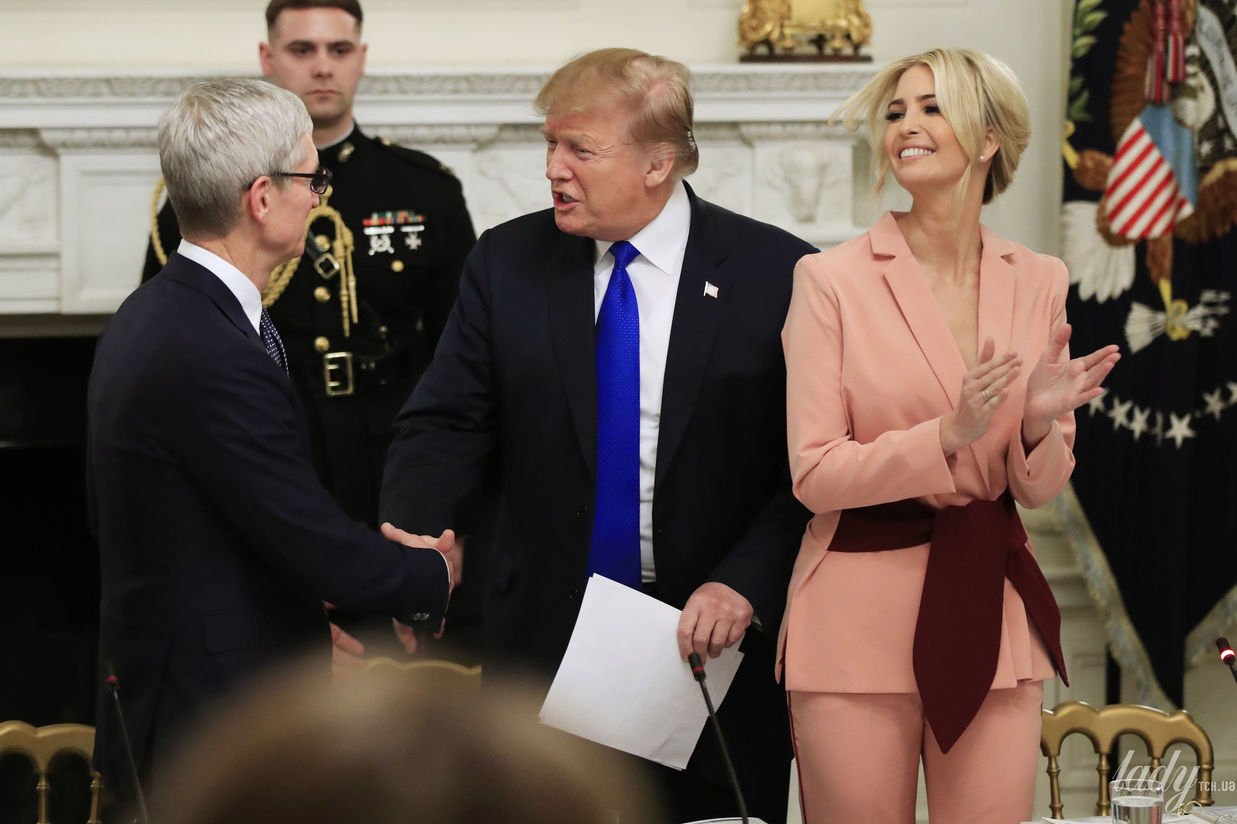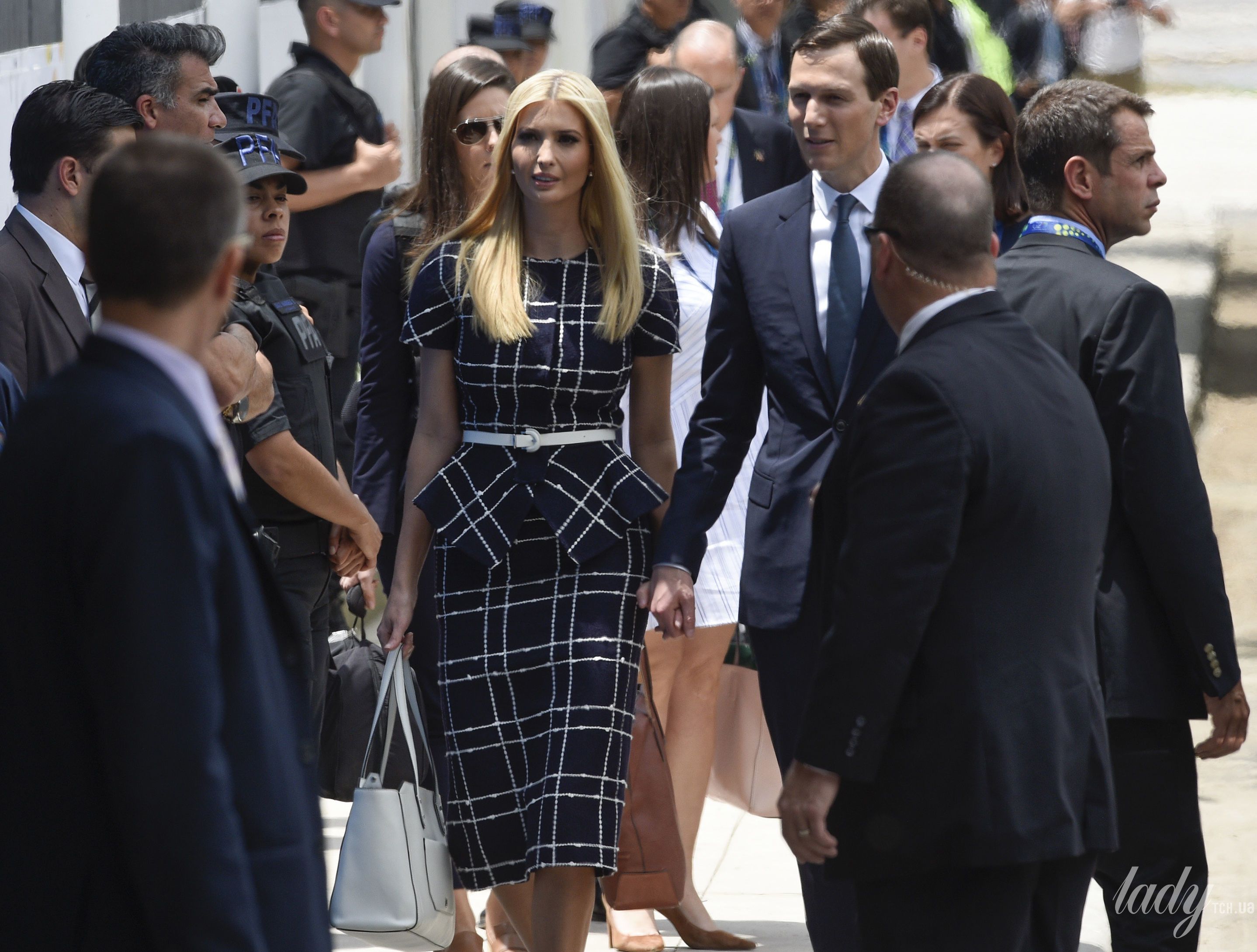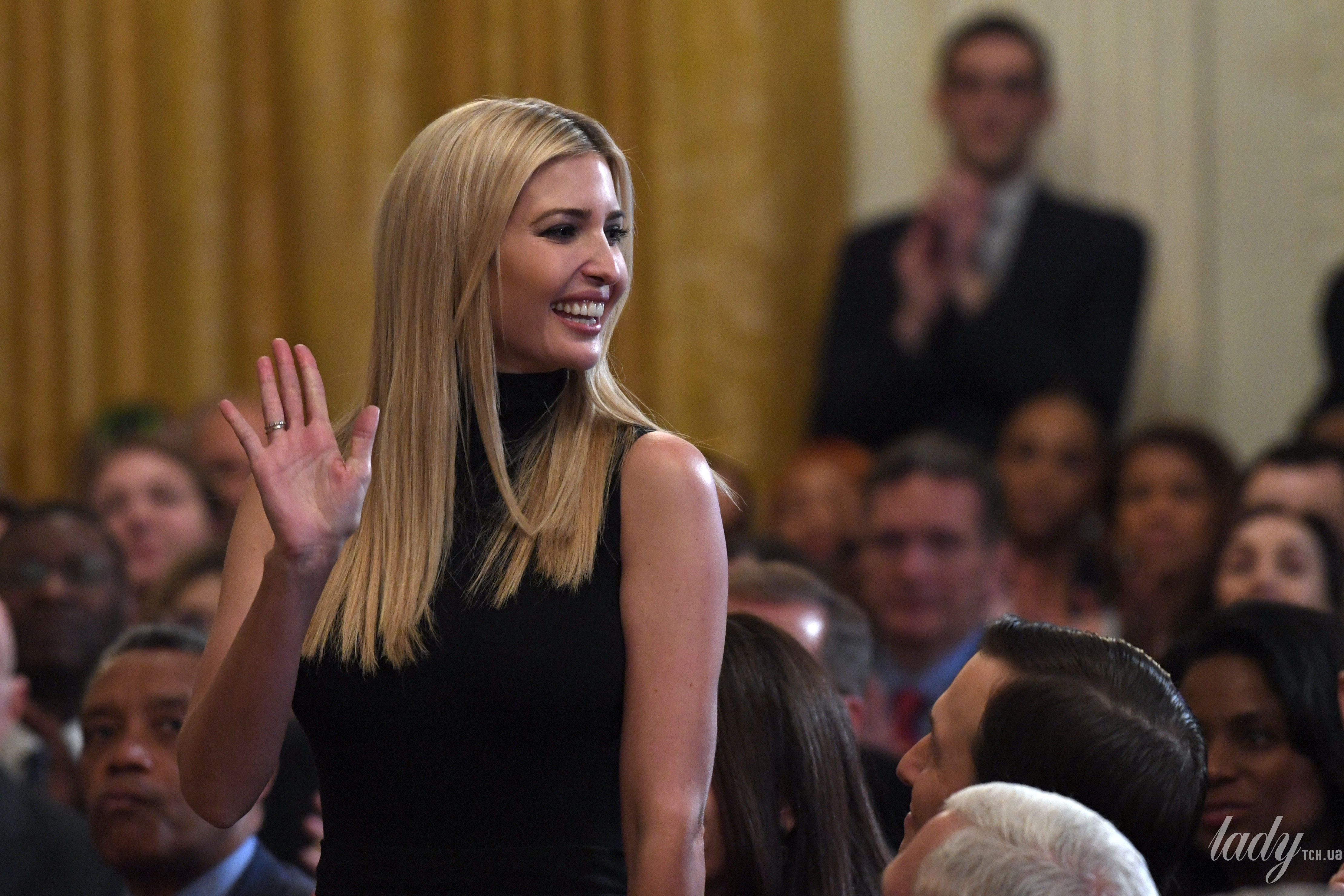Іванка теж обрала чорний колір вбрання – вона з'явилася у сукні Givenchy з декоративними ґудзиками на талії, яку поєднала з червоними човниками.