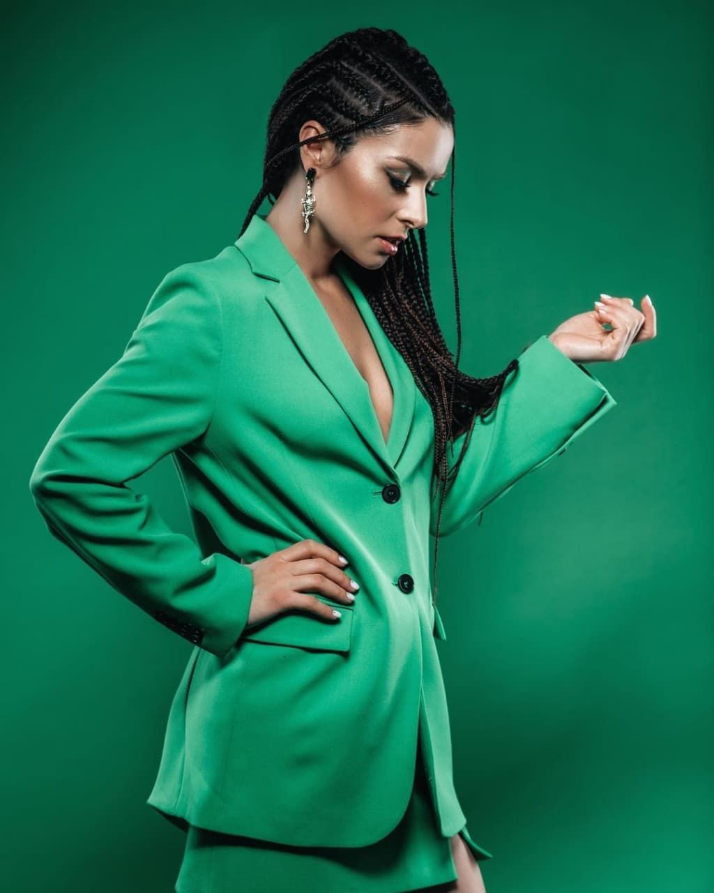 У зеленому міні і жакеті на голе тіло: Злата Огнєвіч у яскравому образі знялася у фотосеті