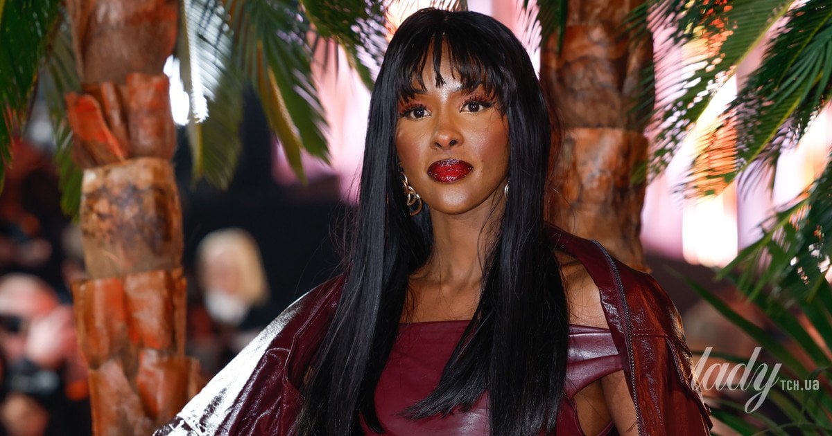 Угандійська телеведуча у шкіряній мінісукні і зі стрілкою на колготах позувала на прем'єрі жахітняка