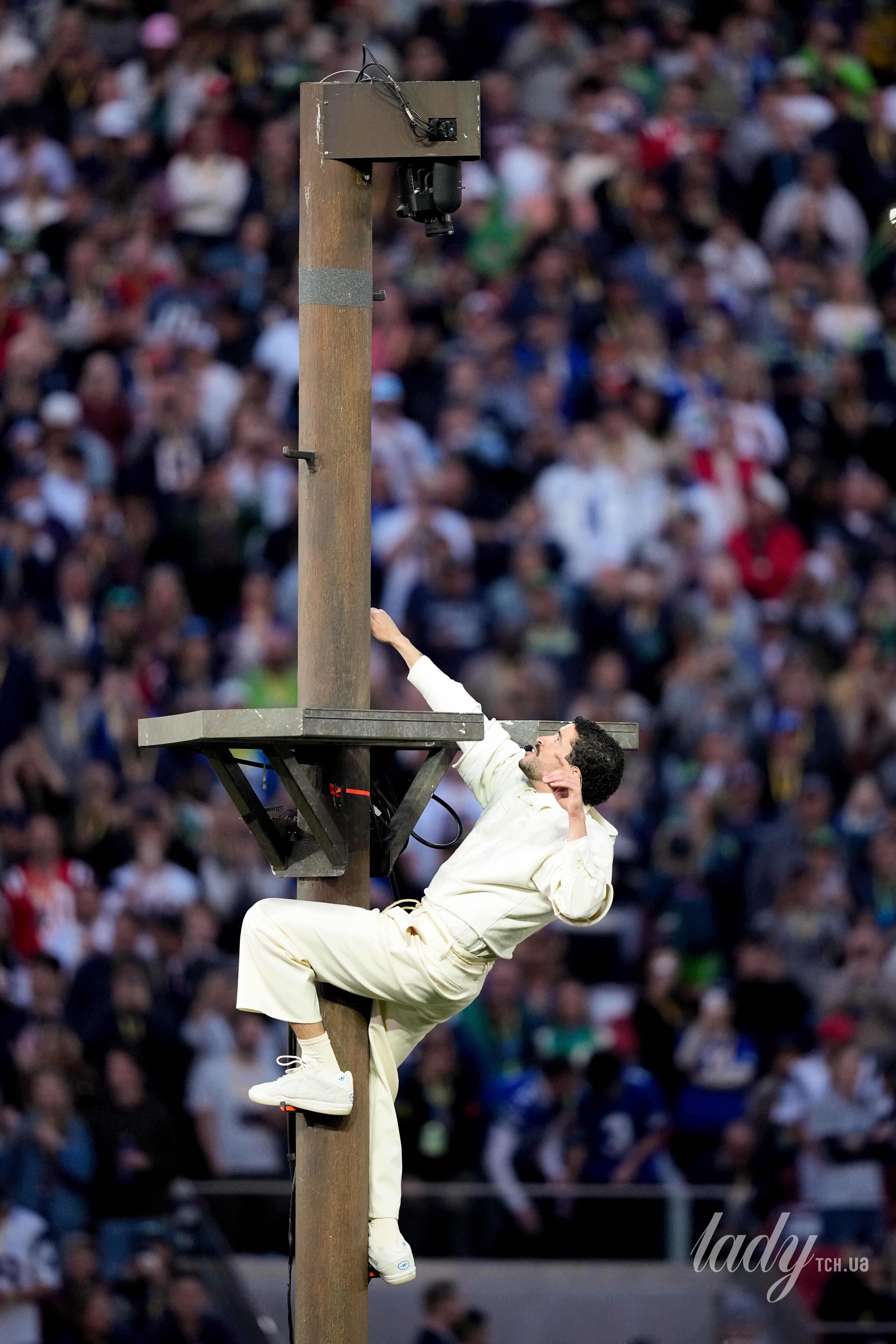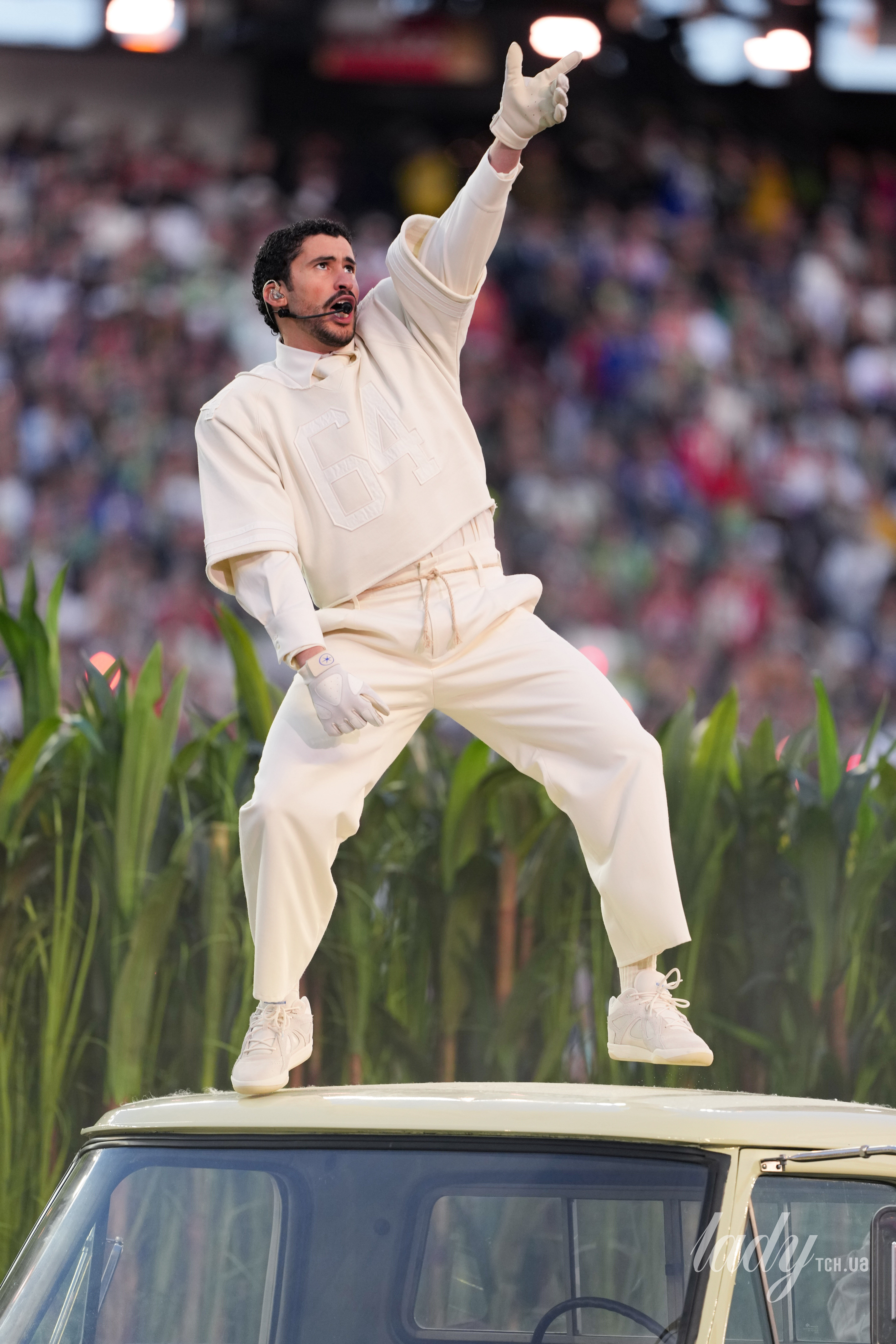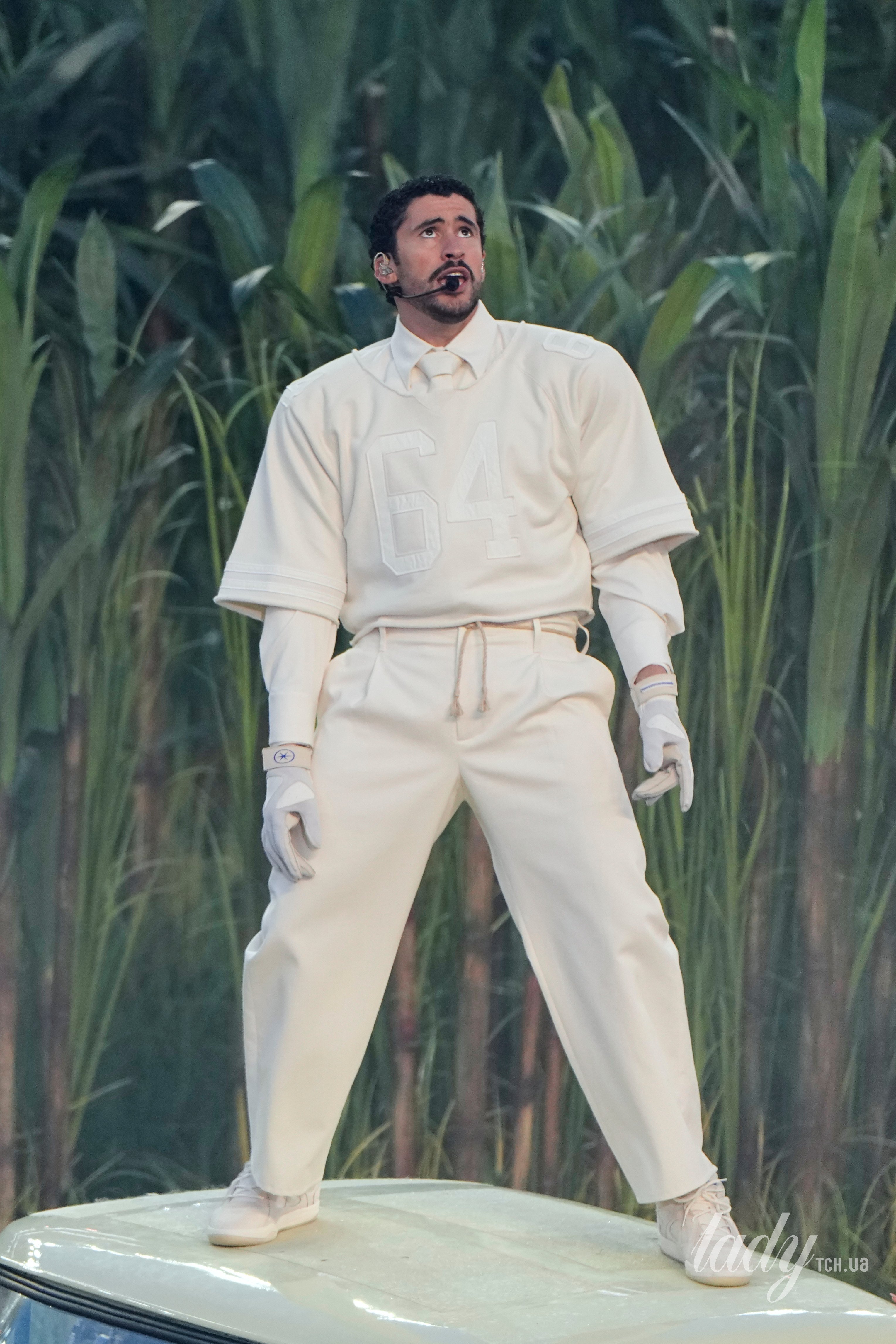 Артист давно зарекомендував себе як яскравий виконавець який окрім музики часто дивує і стилем, тому усі очікували також і того, у що буде одягнений репер. Bad Bunny вийшов на стадіон у образі розробленому брендом Zara.