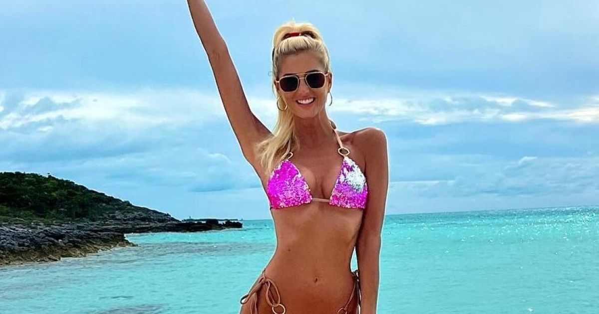 Відпочиває на Багамах: зірка реаліті у рожевому бікіні з паєтками похизувалася стрункою фігурою