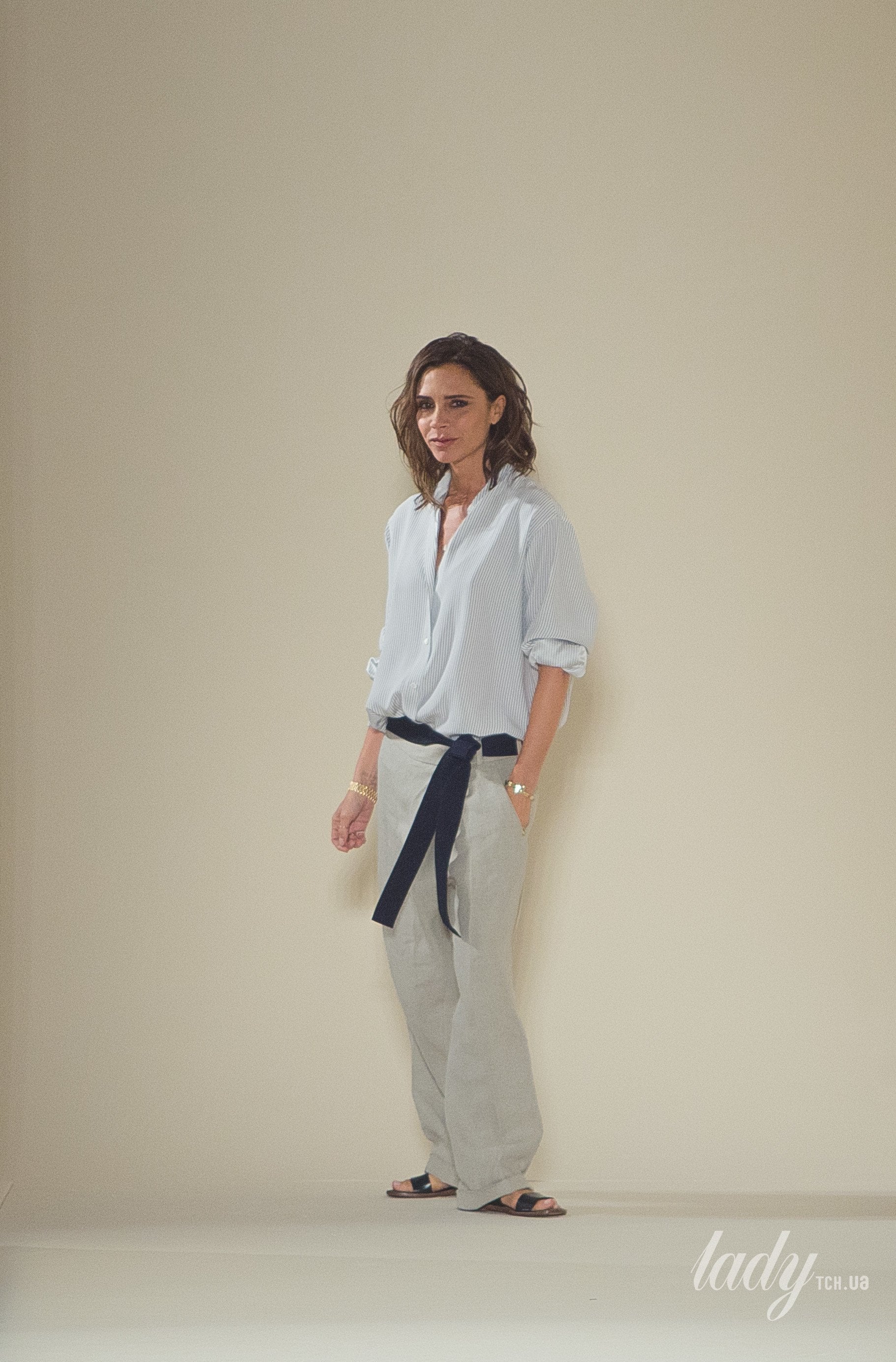 На цьому знімку Вікторію зазнімковано під час показу своєї колекції весна-літо 2017 на Тижні моди у Нью-Йорку у вересні 2016 року. Вона мала тоді коротку стрижку.