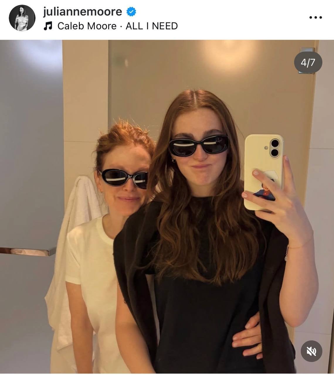 65-річна американська акторка, володарка премії «Оскар» — Джуліанна Мур — поділилася у своєму Instagram серією селфі, на яких вона позує разом зі своєю донькою — 24-річною Лів.
