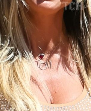 Образ вона завершила сонцезахисними окулярами, макіяжем, укладанням та безліччю прикрас, серед яких можна помітити підвіску з ім'ям її чоловіка – Том.