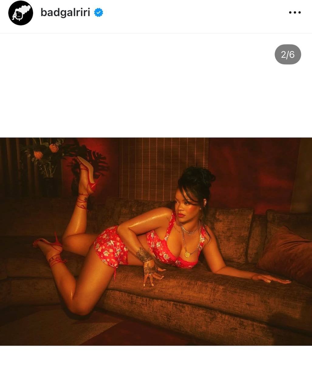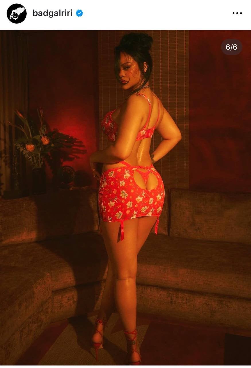 38-річна барбадоська співачка Ріанна стала головною зіркою промокампанії нової колекції Monamour свого бренду спідньої білизни Savage x Fenty. На фото вона позувала в ефектному комплекті з квітковим принтом, який складається з бюстгальтера і широкого пояса для панчіх з пікантним вирізом на сідницях.