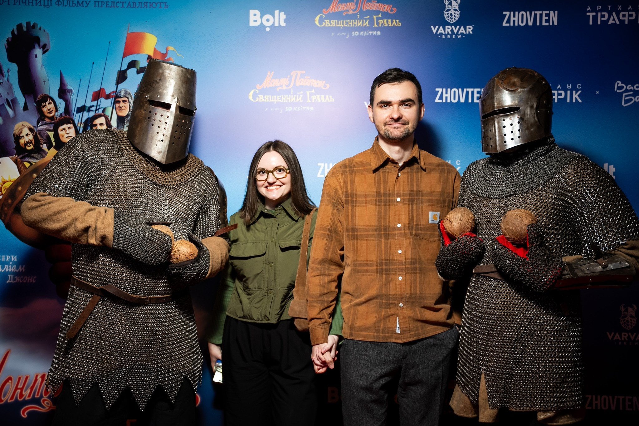 У кінотеатрі «Жовтень» відбулася прем’єра британського фільму «Монті Пайтон і Священний Ґрааль», яку озвучили українські коміки та комікеси. Стрічку презентував комік Василь Байдак, який був ініціатором повернення культового фільму на широкі українські екрани.