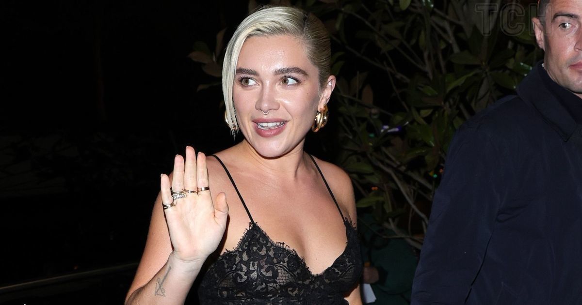 Для такої події акторка обрала відвертий аутфіт. Вона одягла чорну прозору мереживну сукню з фатиновою пишною спідницею з рюшами і на тонких бретельках. Під вбрання Флоренс не одягла бюстгальтер, тому виблискувала перед присутніми своїми грудьми.