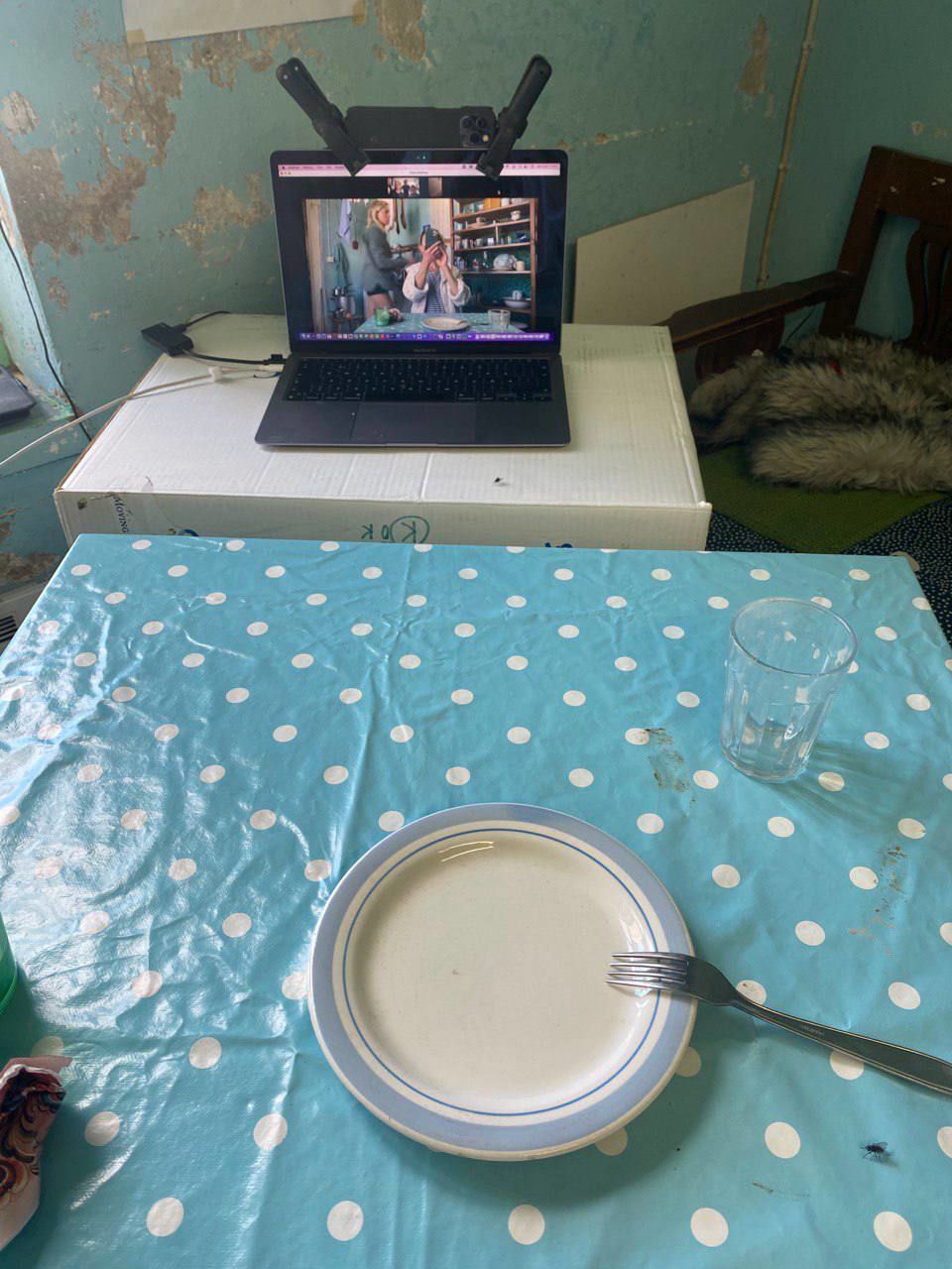 "Це доволі цікавий, але складний досвід. Було питання затримки зв'язку, а сцену треба було відзняти фактично у режимі прямого ефіру. Телефон був закріплений на моєму ноутбуці і я бачила саму себе в кадрі. Тобто, з одного боку це було цікаво, грали ніби з дзеркалом трохи. Водночас, я граю такий персонаж, на якого мені і самій було неприємно в кадрі дивитися. Думаю ця сцена і вийшла такою справжньою, бо це все було і справді онлайн", – поділилася Катерина.