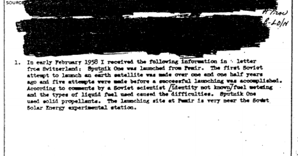 Наприклад, у звіті від 8 лютого 1956 року аналітики ЦРУ повідомили, що СРСР веде роботу над розробкою супутника. Вони припустили, що перший запуск може відбутися в 1958 році, а спостерігати за атмосферними явищами за допомогою своїх апаратів Радянський Союз зможе до 1963 році.