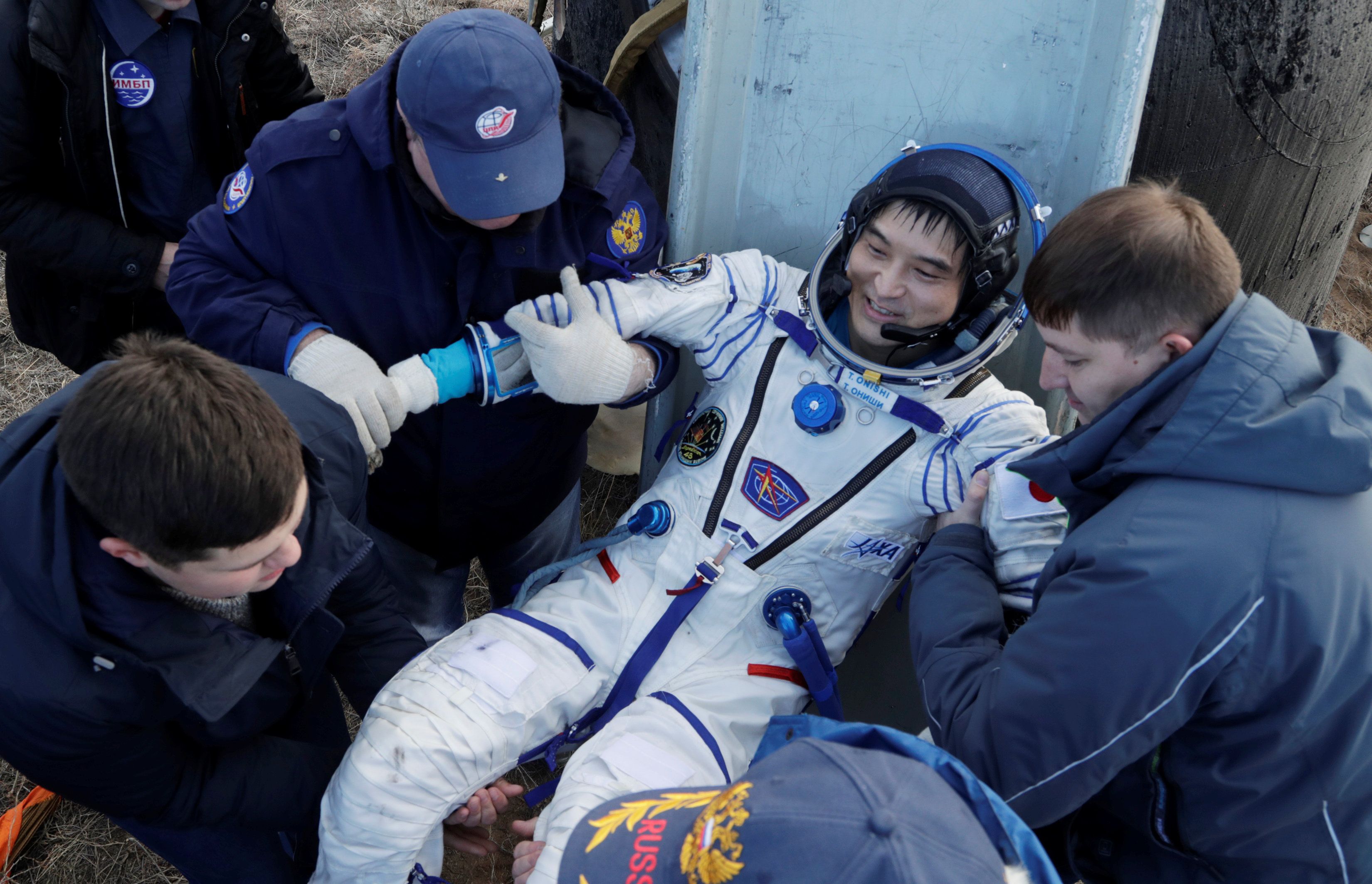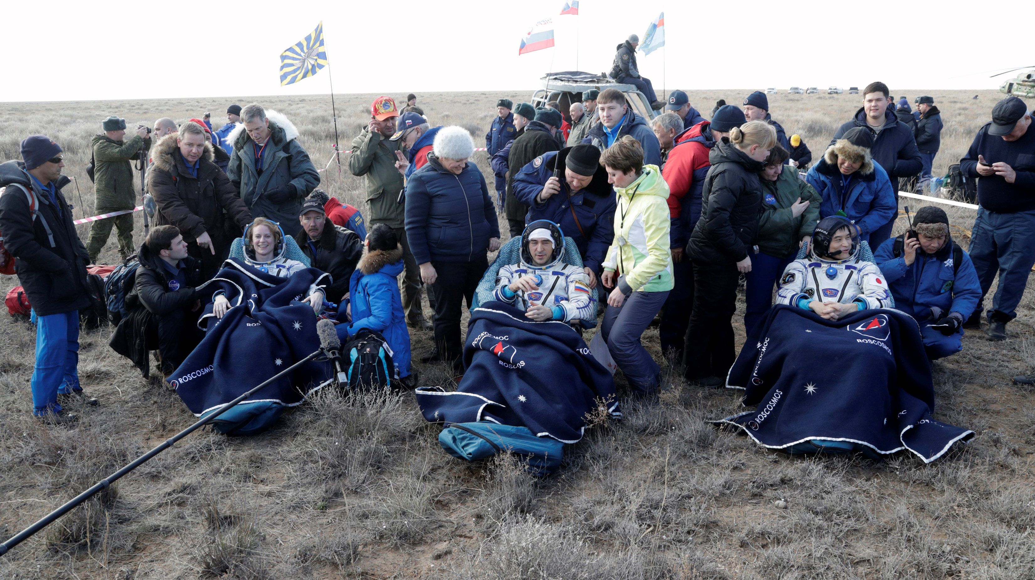 Команда складалася з російського космонавта Анатолія Іванишина, астронавта зі США Кейт Рубінс та їхнього японського колеги Такуї Оніші. / © Reuters