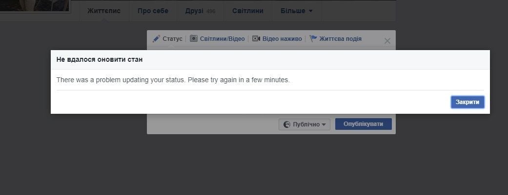 У суботу, 26 серпня, приблизно по обіді у соцмережі Facebook стало неможливим публікувати пости.