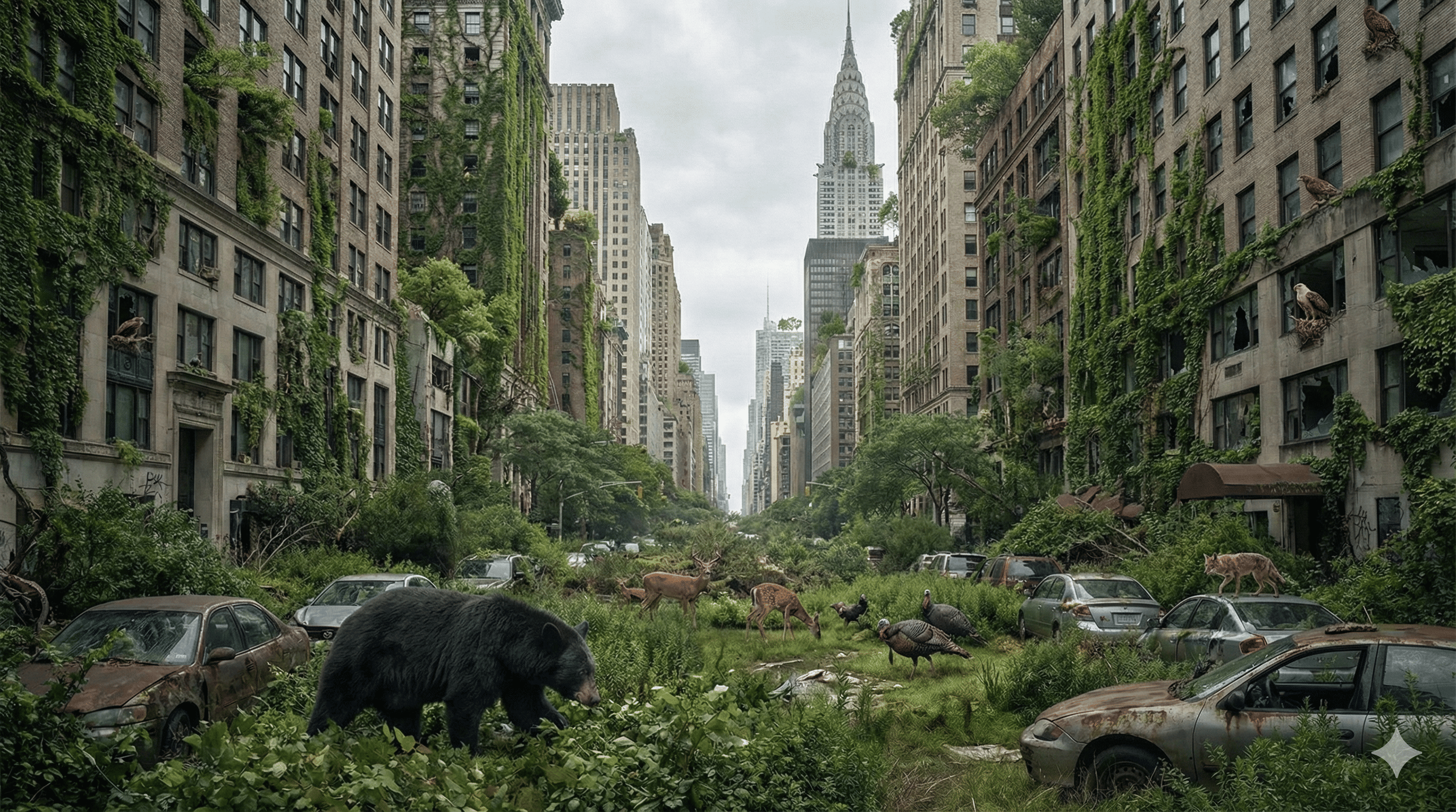 Якщо гамір Нью-Йорка раптово зникне разом з усіма автівками та мільйонами жителів, природа почне захоплювати мегаполіс вже через кілька днів і згодом перетворить його на ліс із хижаками.