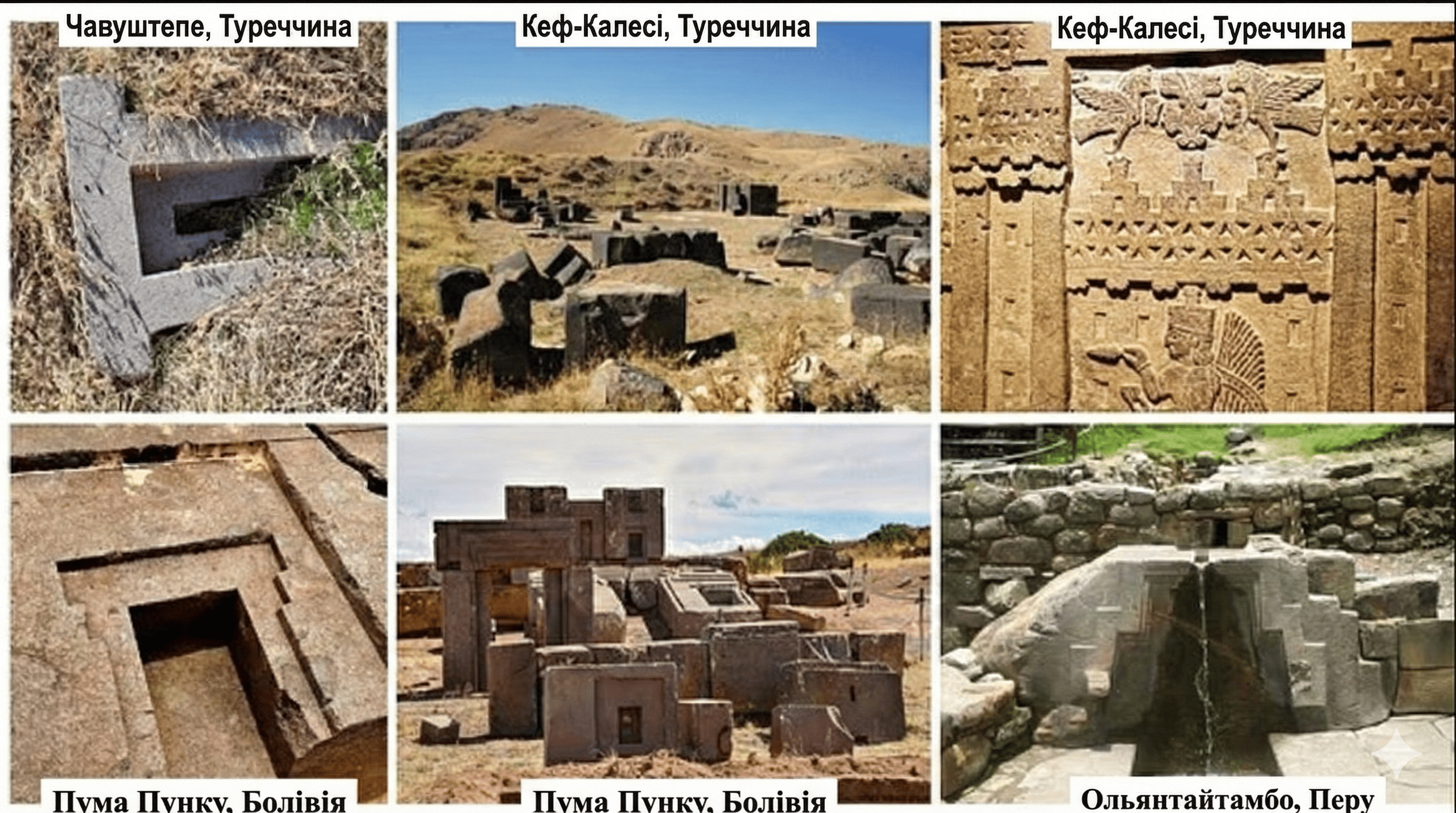 Особливу увагу експерт звертає на кам’яний рельєф у Кефкалесі, який містить складну іконографію розміром 1,2 на 1,2 метра. Цей артефакт демонструє ті самі геометричні мотиви, що згодом з’являються у храмах Гізи в Єгипті та стародавніх руїнах Тіуанако в Південній Америці, слугуючи своєрідним «розеттським каменем» для розшифровки глобального патерну.