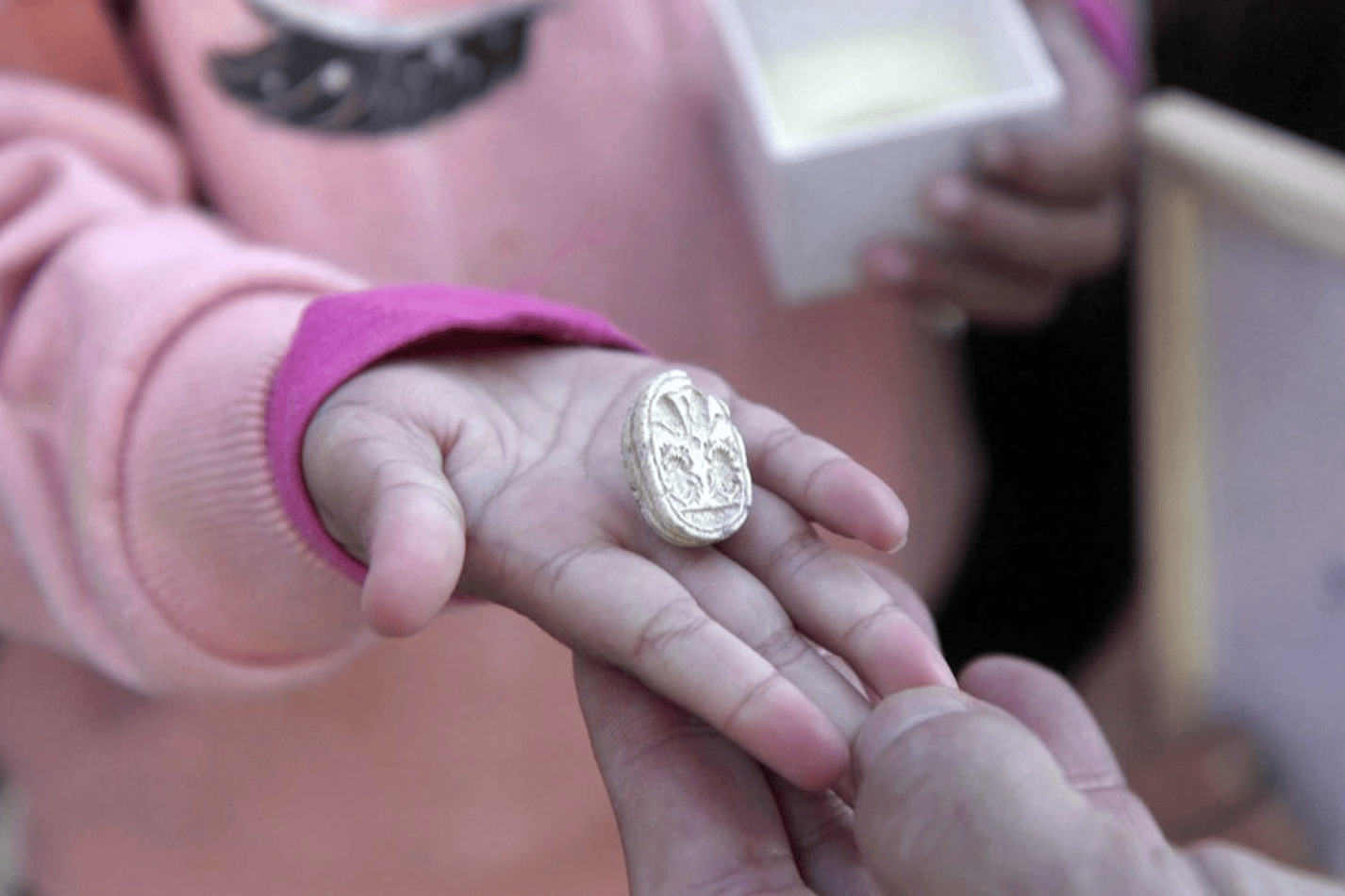 Під час сімейного візиту на археологічний об’єкт у Тель-Азеці дівчинка випадково знайшла амулет-скарабей віком майже 3800 років.