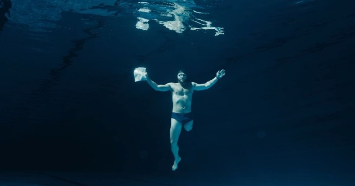 Чоловіка звати Дмитро Ігнатов, він - професійний плавець, спортивний телеведучий, що втратив ногу після травми, отриманої в армії.