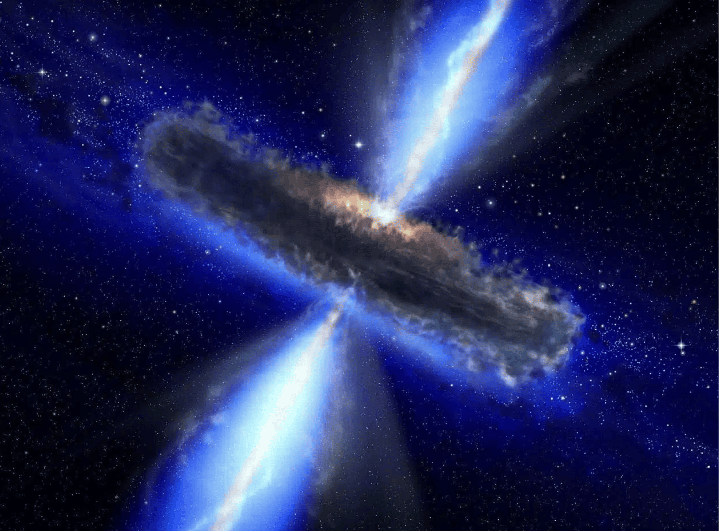 Квазар живиться енергією надмасивної чорної діри, маса якої у 20 мільярдів разів більша за Сонце. Вона випромінює колосальну енергію — на рівні тисячі трильйонів Сонць — створюючи екстремальні умови, у яких газ і пил нагріваються та змінюють свою структуру.